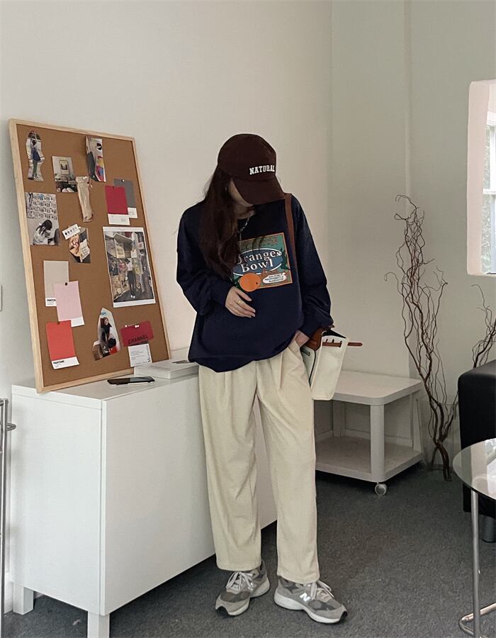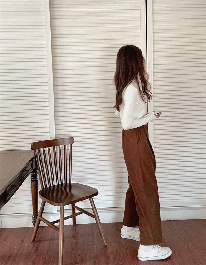 韓国ファッション秋物ウィンタースタンダードストレッチウェストハイウェスト薄手コーデュロイカジュアルパンツ レトロ エラスティック 伸縮 オータム 冬物 ウエスト muzly52433268880 | Neatly