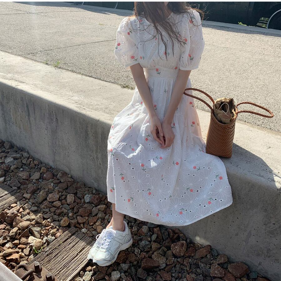 韓国ファッション夏服ラウンドネック刺繍ウェスト薄手ミニ ワンピースワンピース 大人ガーリー スウィート キュート カジュアル 夏物 Oネック ウエスト ミドル丈 muzly61563658469 | Neatly