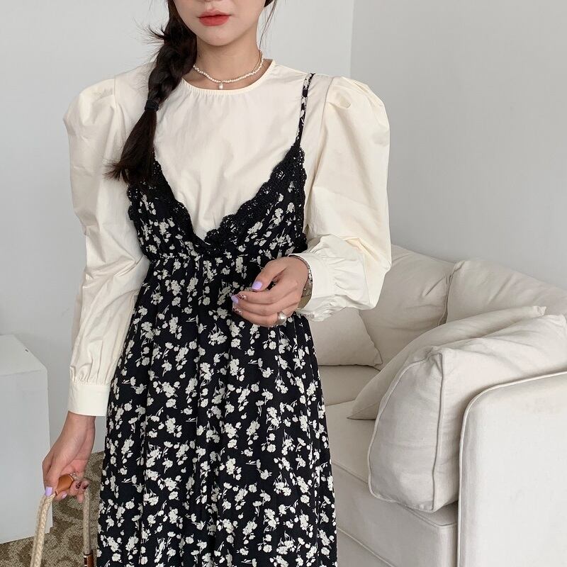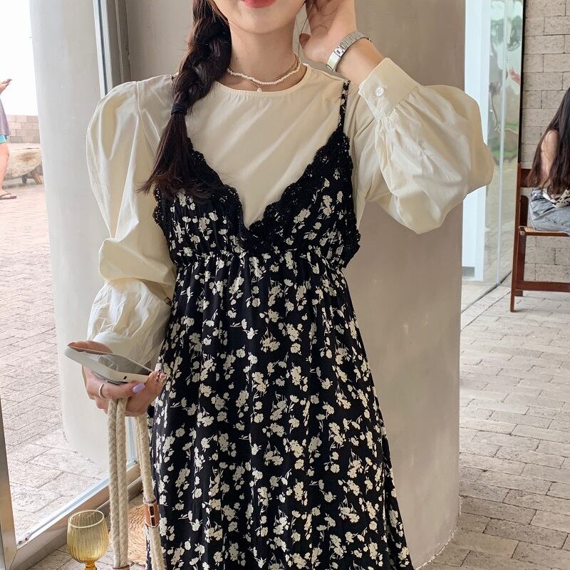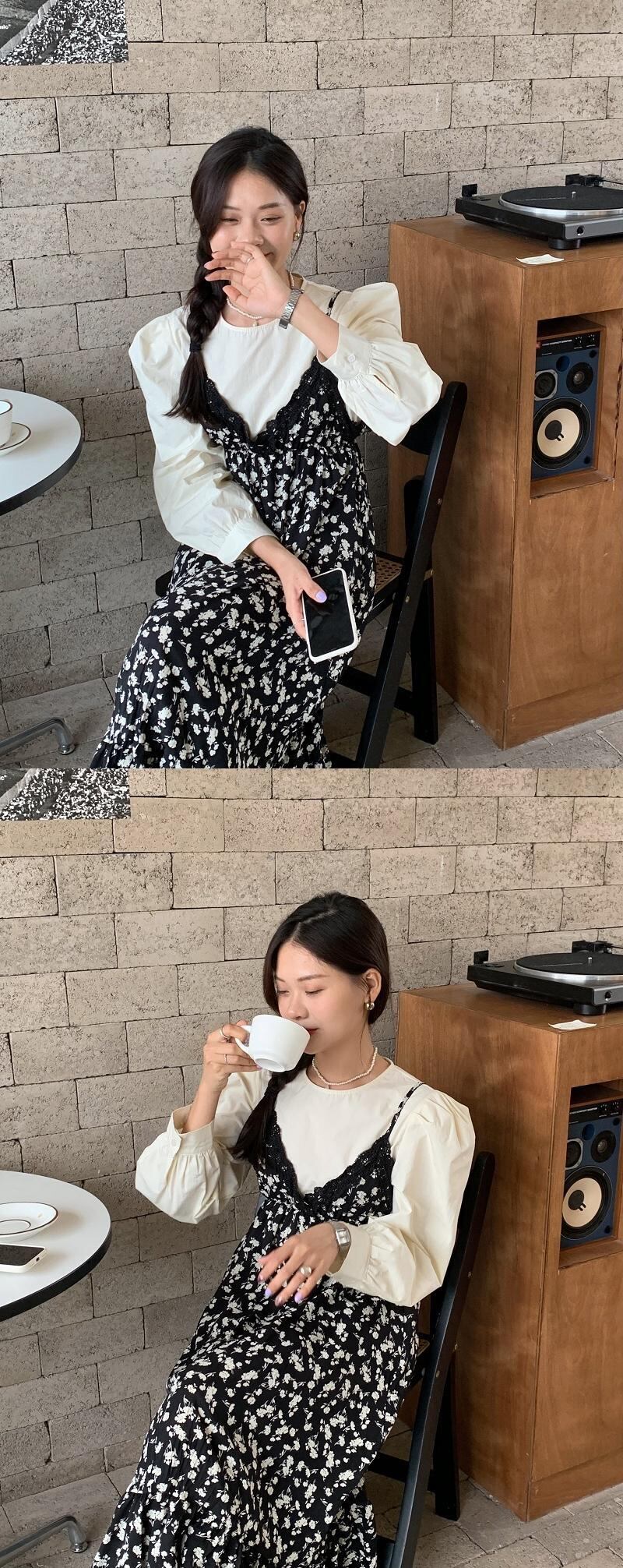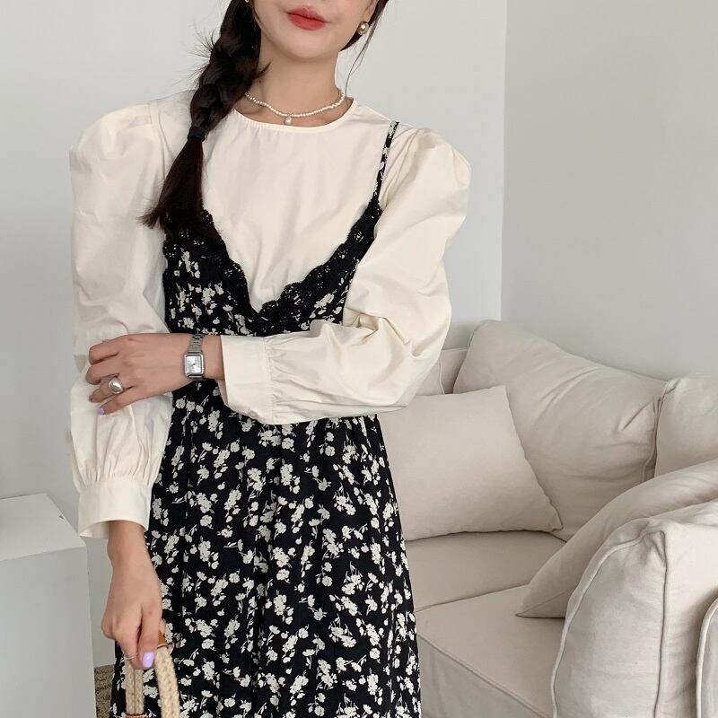 色:アプリコットシャツ,フローラルスカート
