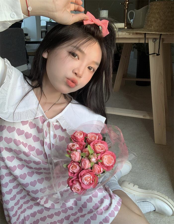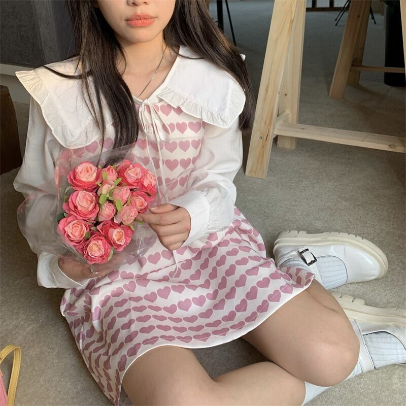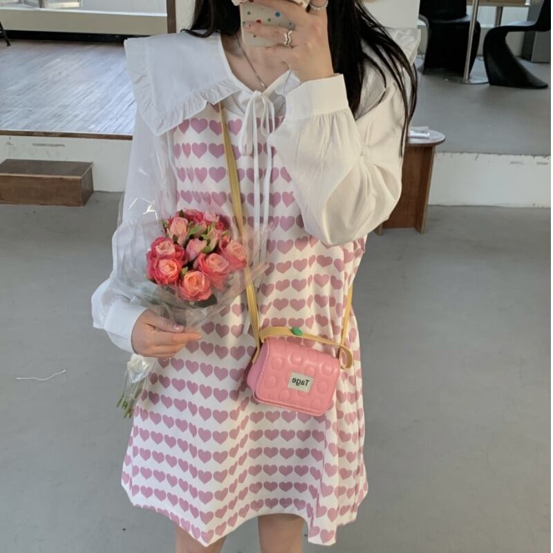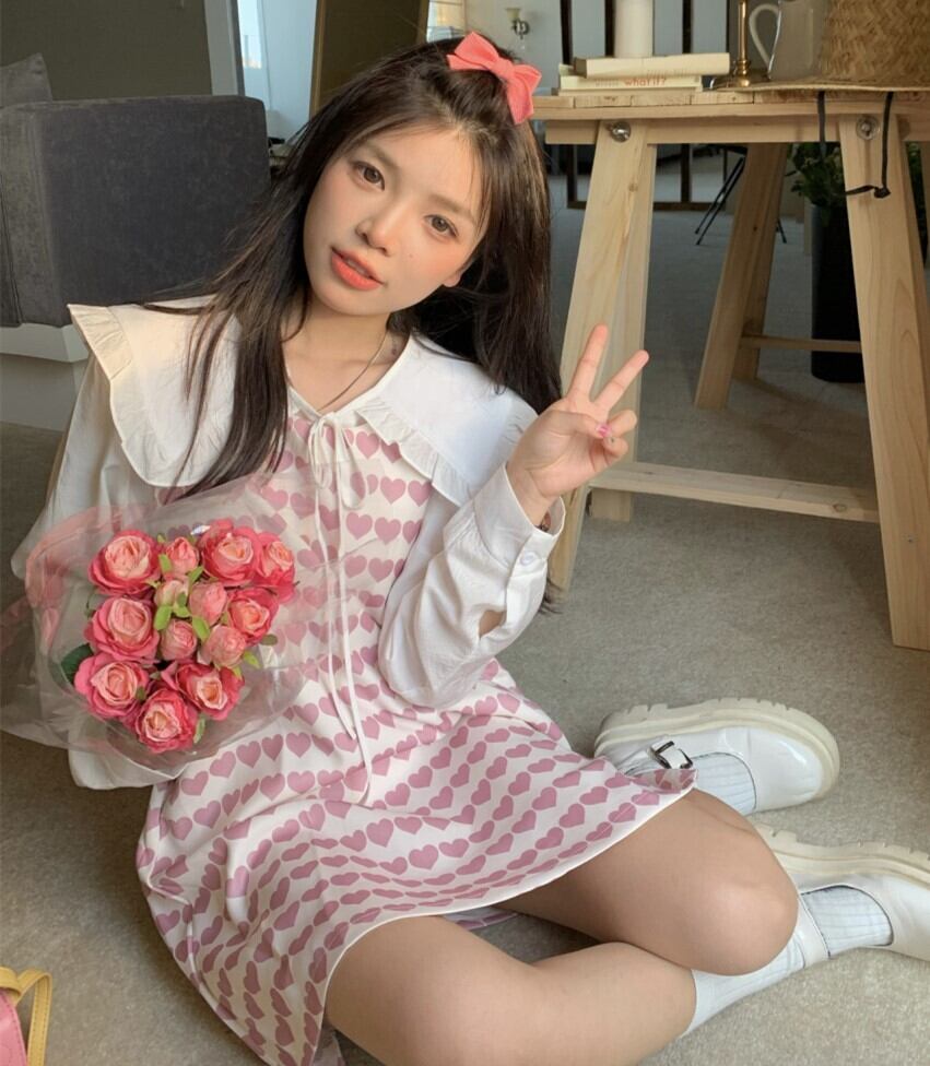 色:白のシャツ,ピンクのラブドレス,黒のハートドレス