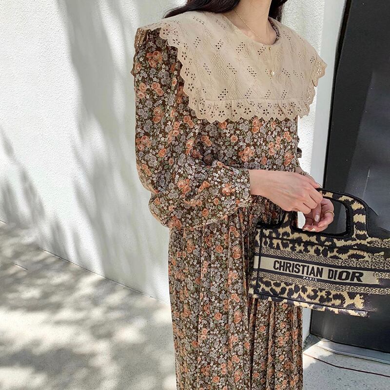 韓国ファッションスプリングレースフローラルスカート ウェストワンピースレディース ロング 大人ガーリー スウィート キュート カジュアル 春物 花柄 長袖 ウエスト muzly46953545926 | Neatly