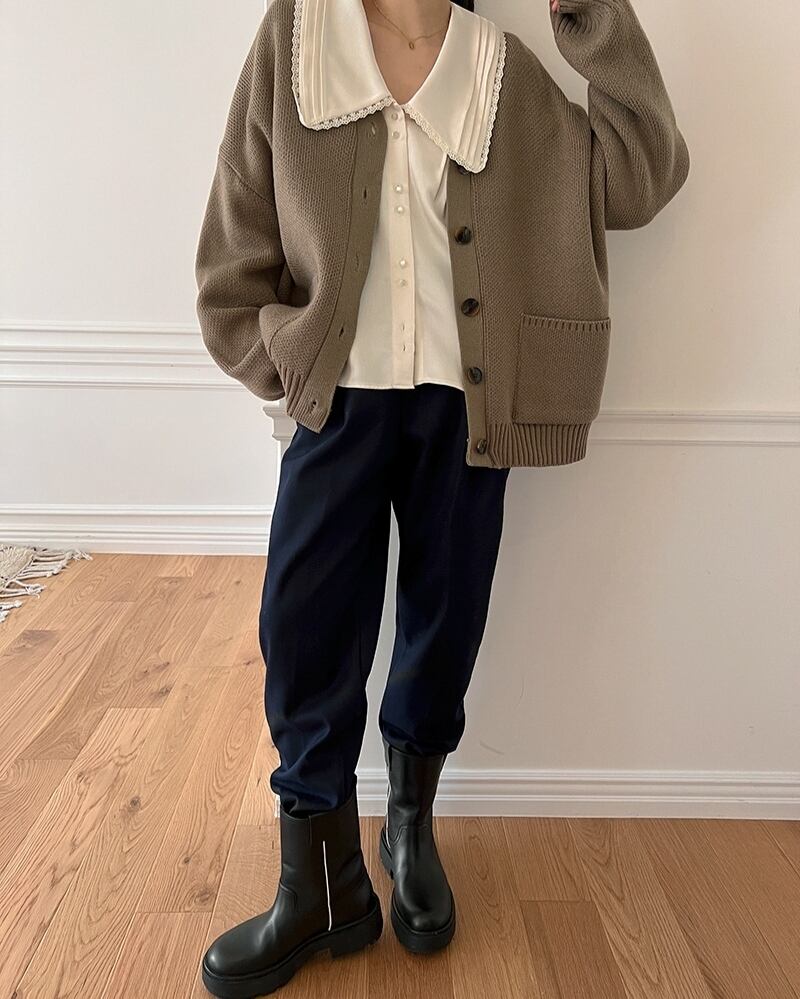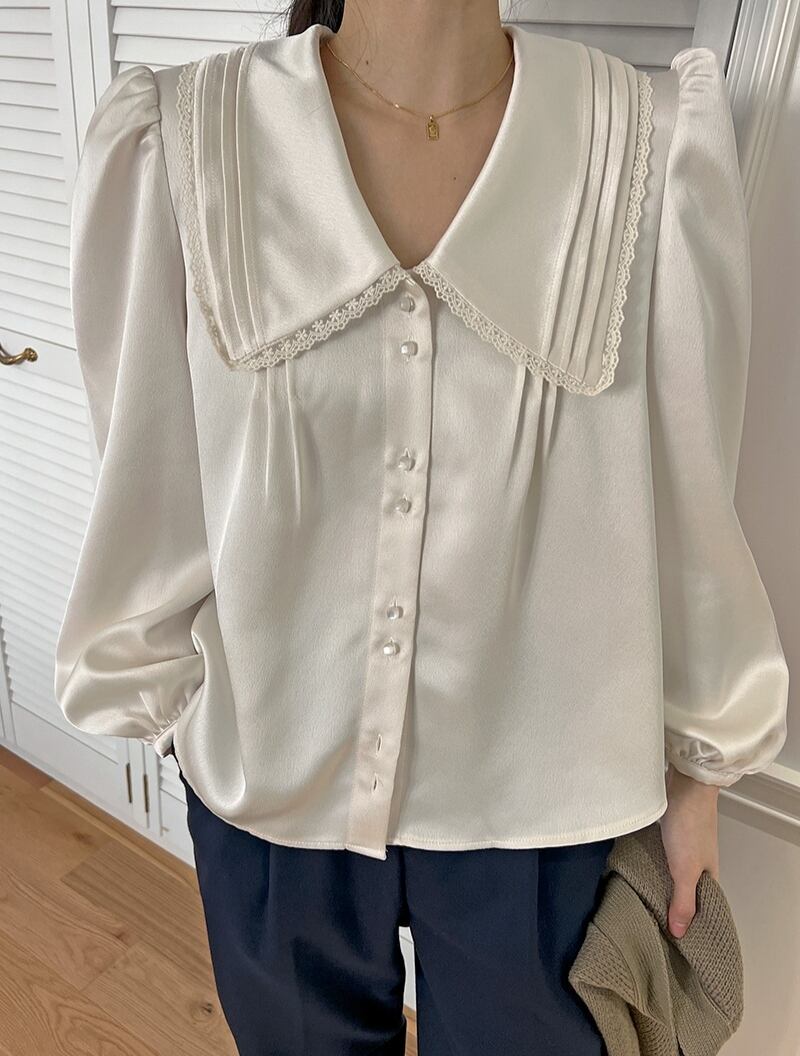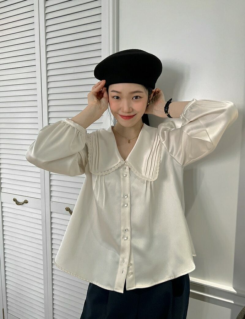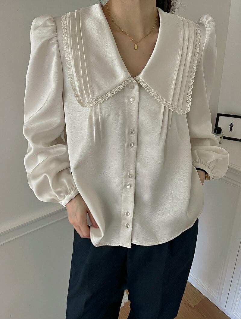 韓国ファッションスプリングレースカラールーズソリッド 薄手シャツ ロング 大人ガーリー スウィート キュート カジュアル 春物 ソリッドカラー 長袖 muzly94216280697 | Neatly