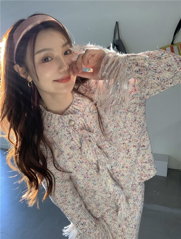 韓国ファッションNEWウィンタースタンダードラウンドネックセーター ショートコート ハイウェストウェストロングニットスカート レトロ 冬物 Oネック ウエスト muzly6964699180 | Neatly