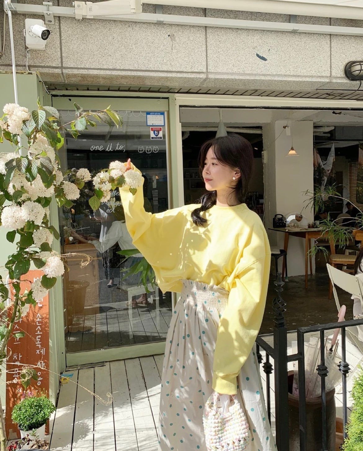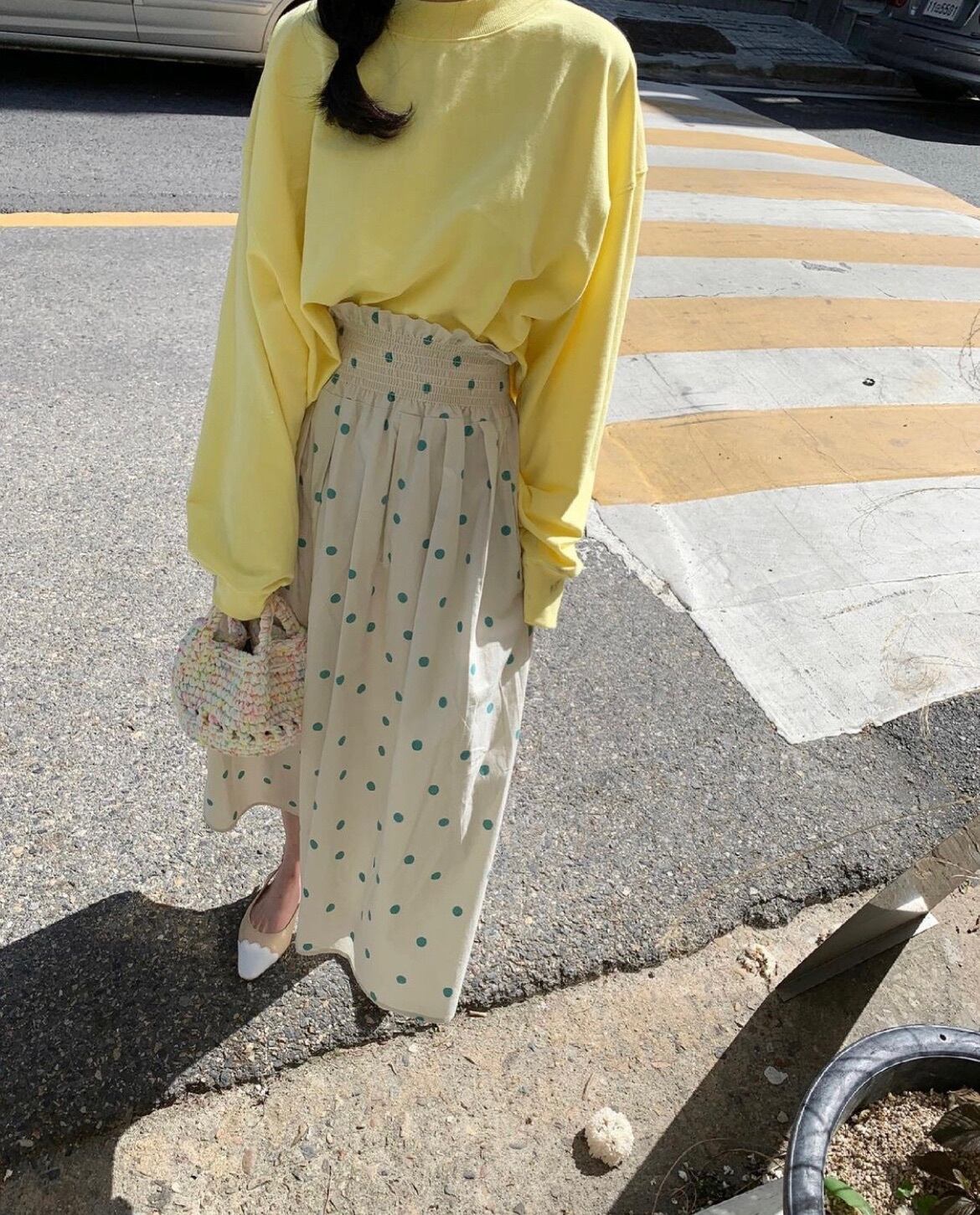 NEWスプリングルーズラウンドネックセーター ストレッチハイウェストウェスト水玉スカート レディース ロング エラスティック 伸縮 春物 Oネック 長袖 ウエスト muzly77676335253 | Neatly