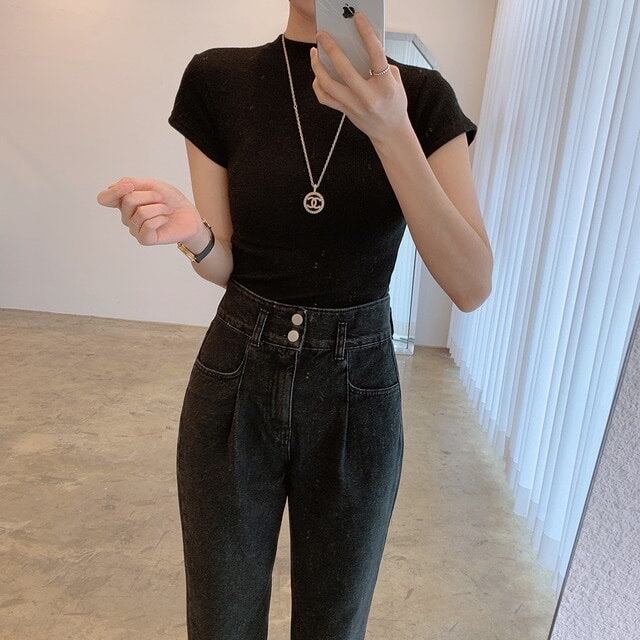 色:白いTシャツ,黒いTシャツ,ジーンズ