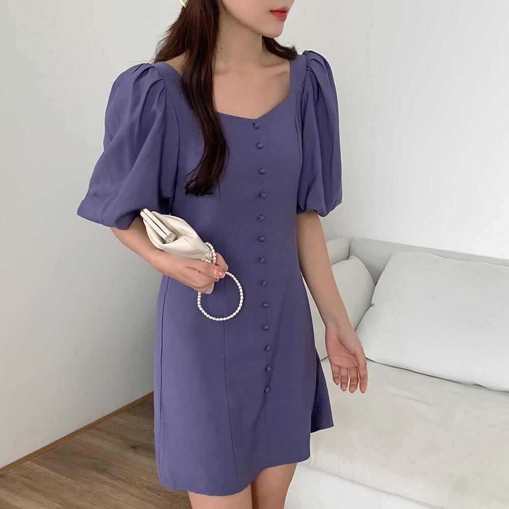 韓国ファッション夏服スタンダードカラーショートスカート ハイウェストウェスト薄手半袖スリーブワンピース レトロ ハーフスリーブ エレガント 夏物 スクウェア ウエスト muzly11999752783 | Neatly