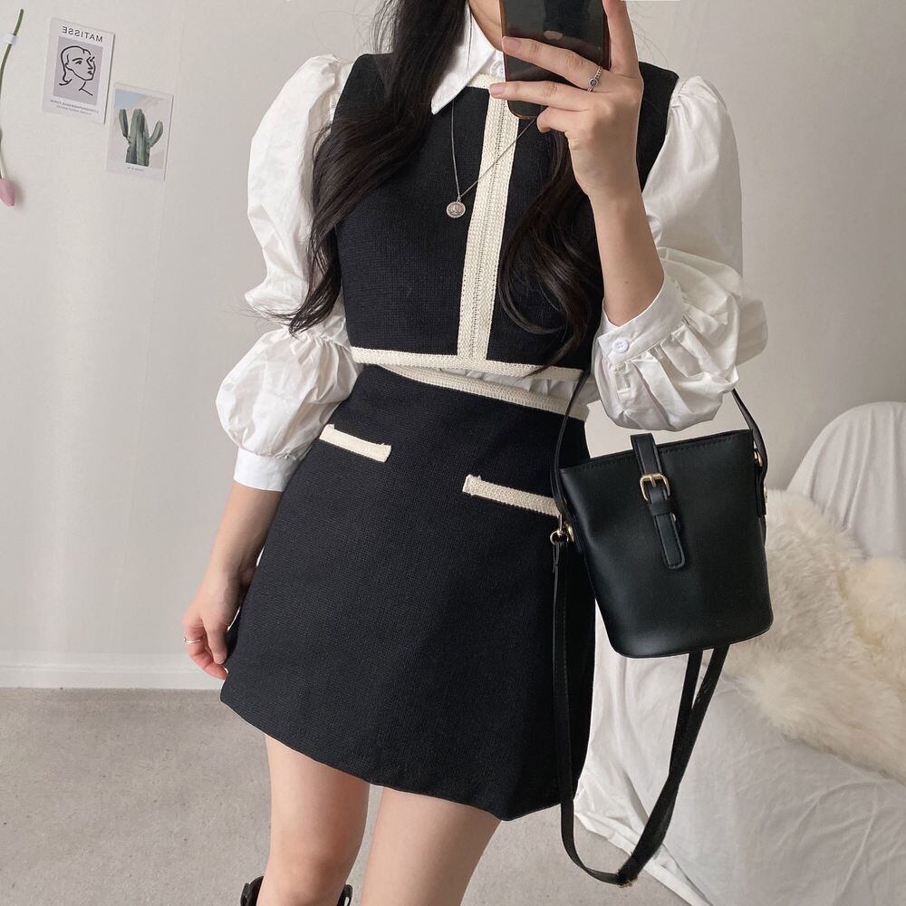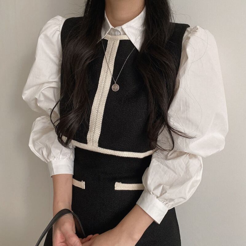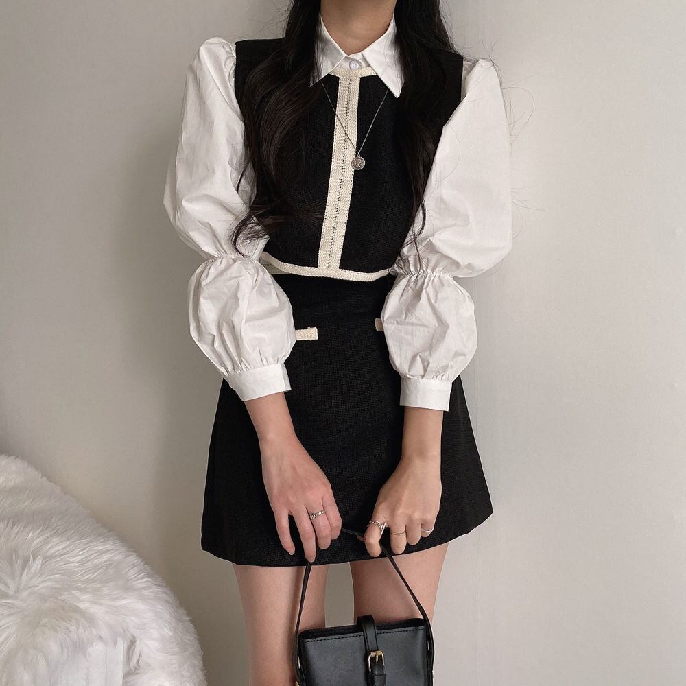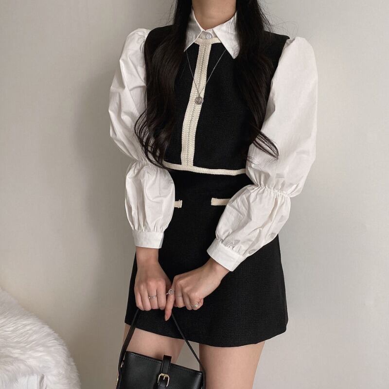 色:白のシャツ,黒のベスト,ブラックスカートSサイズ,黒スカートM