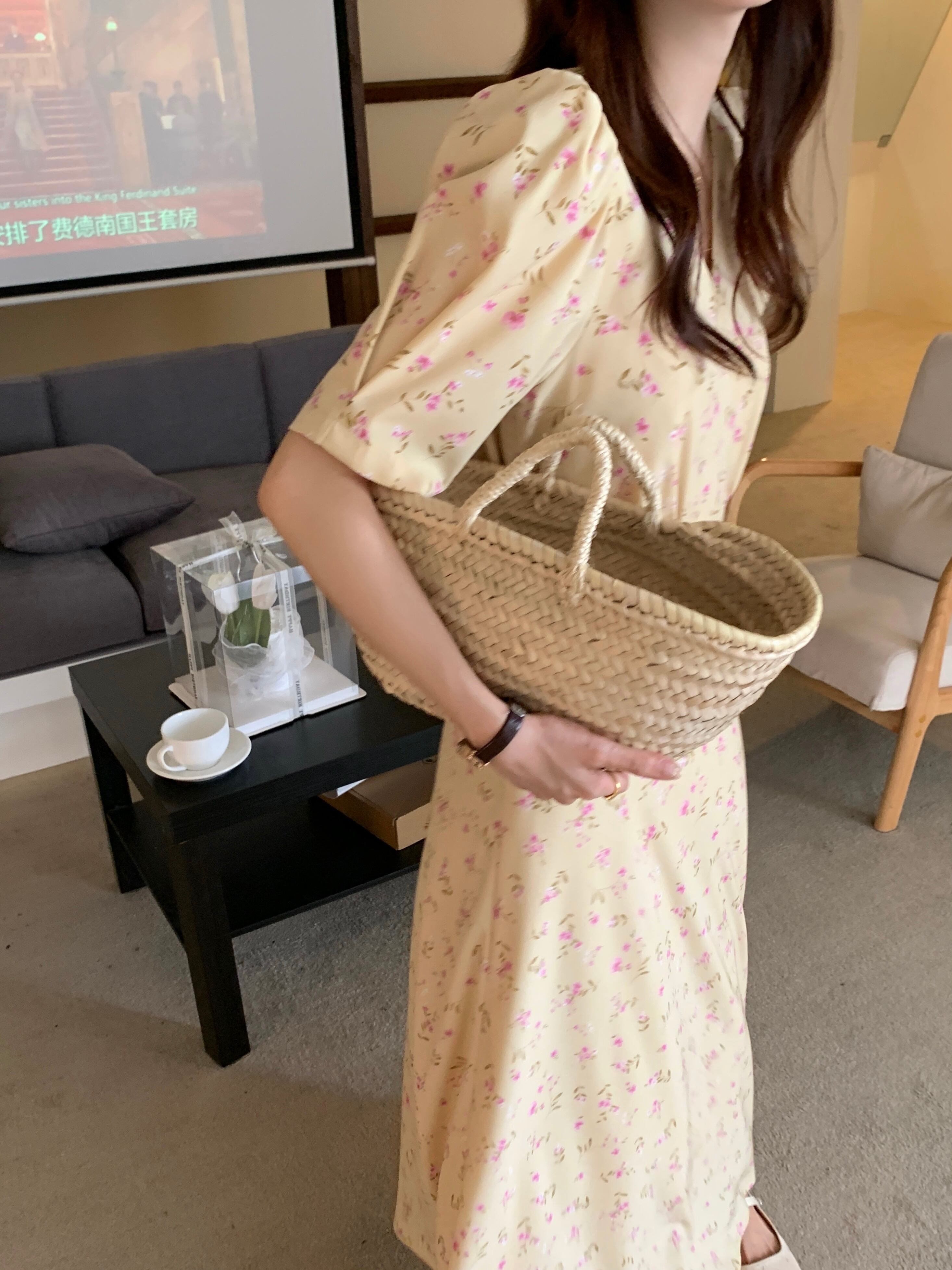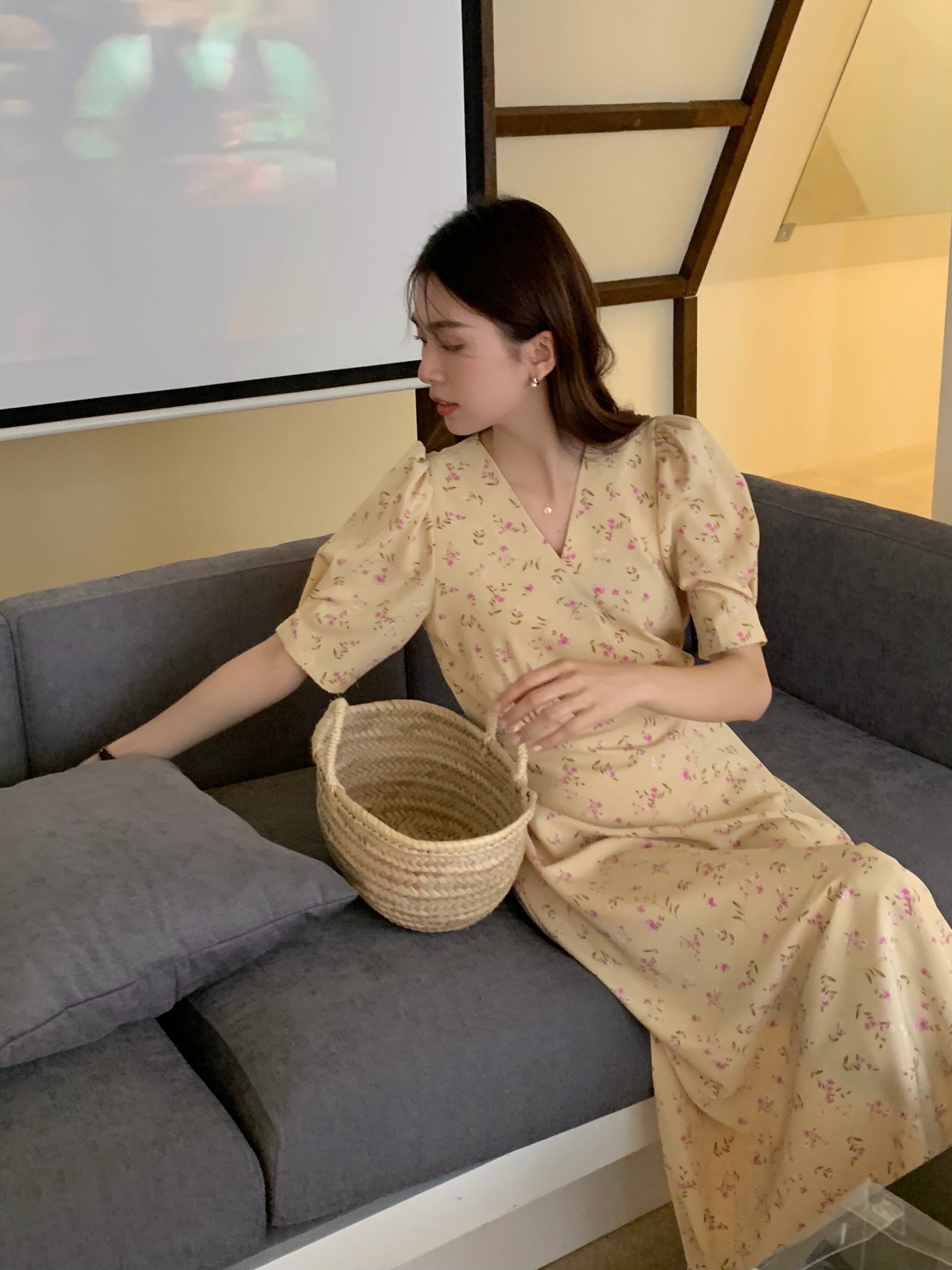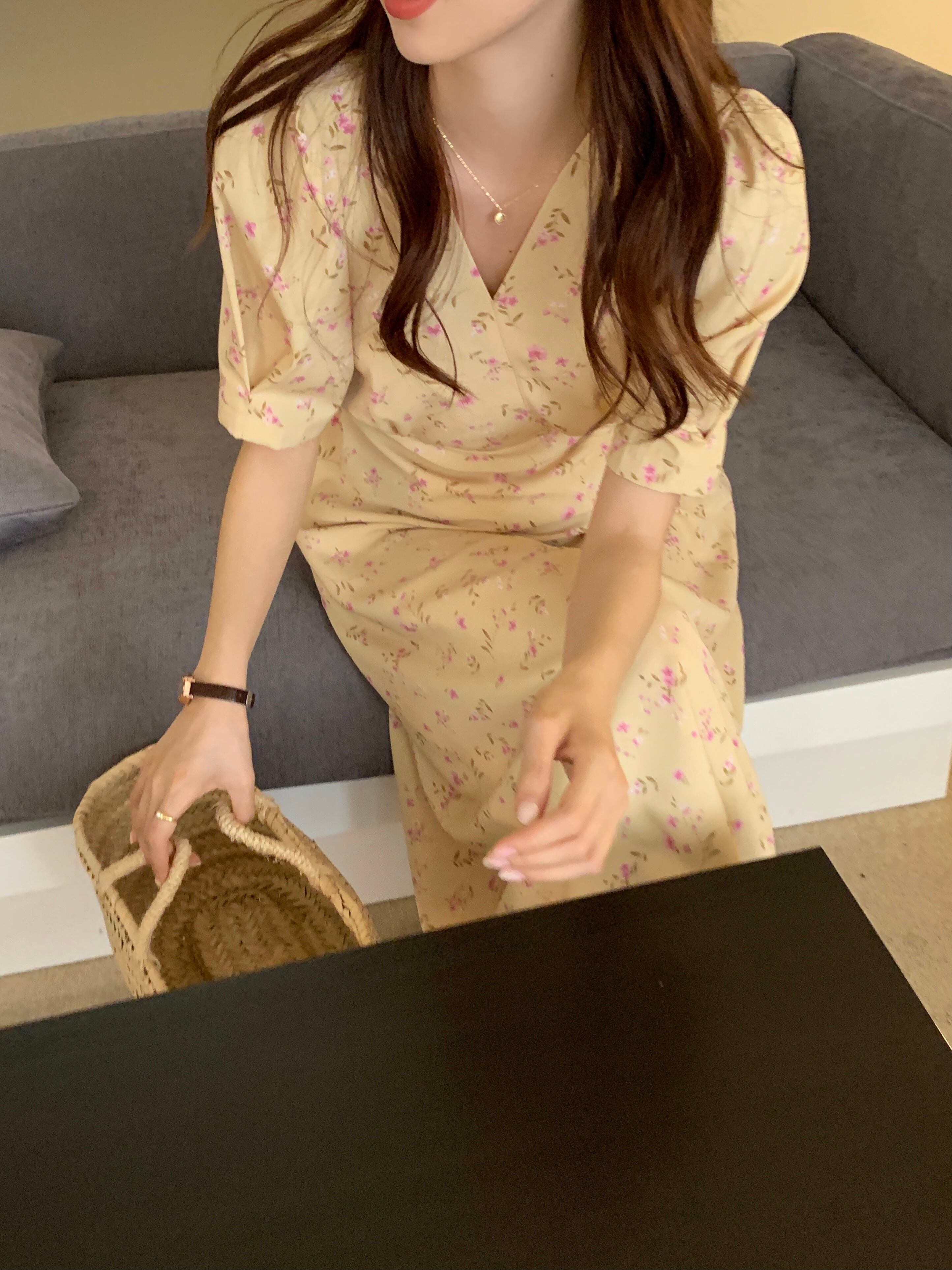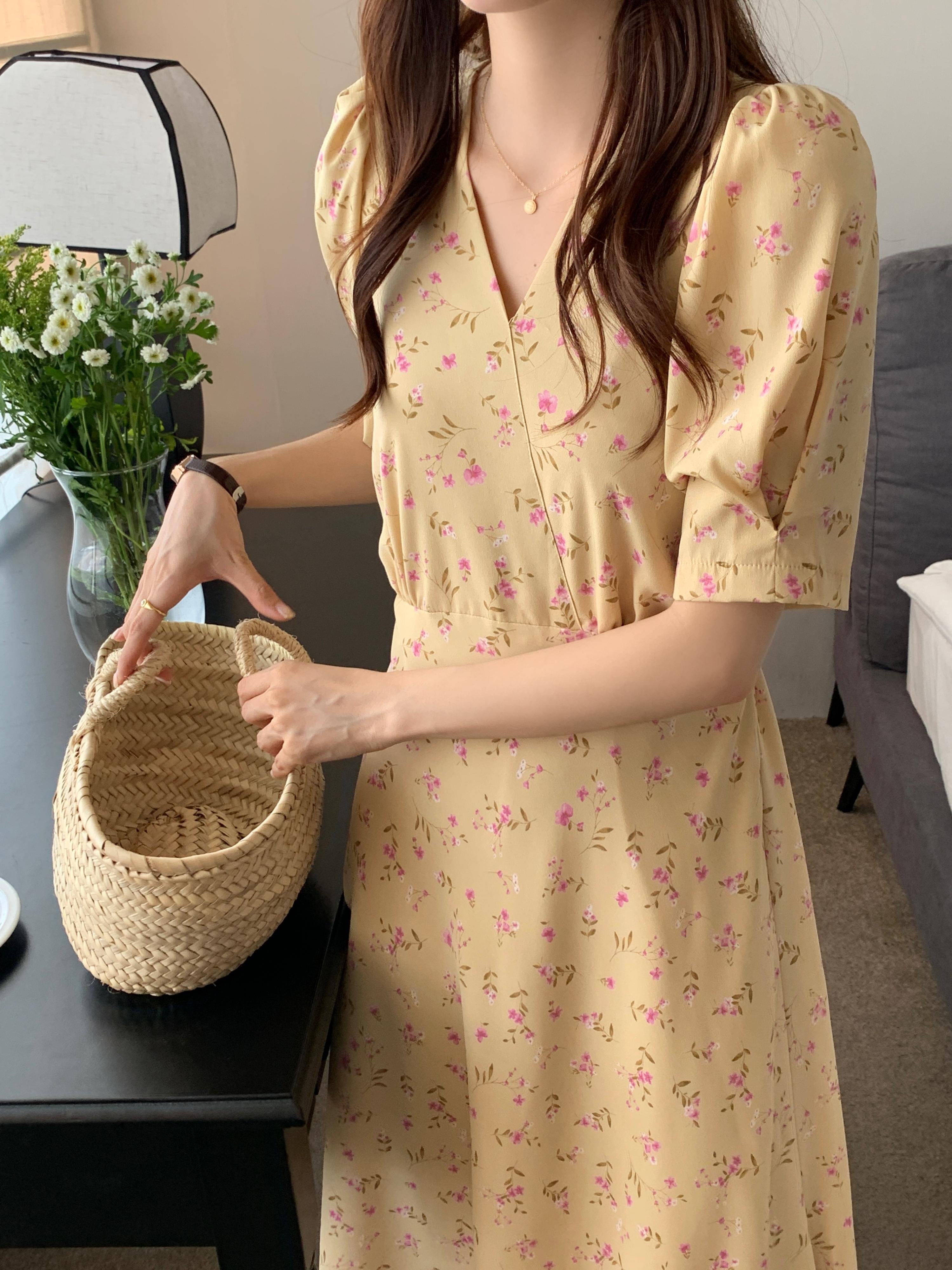 韓国ファッションNEW夏服スタンダードクロスVネックロングフローラルスカート ハイウェストウェスト薄手半袖スリーブワンピースレディース ショート レトロ ハーフスリーブ 夏物 花柄 ウエスト muzly45043513572 | Neatly