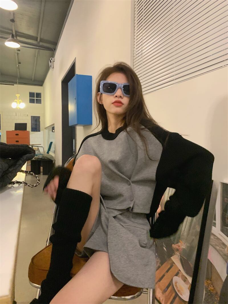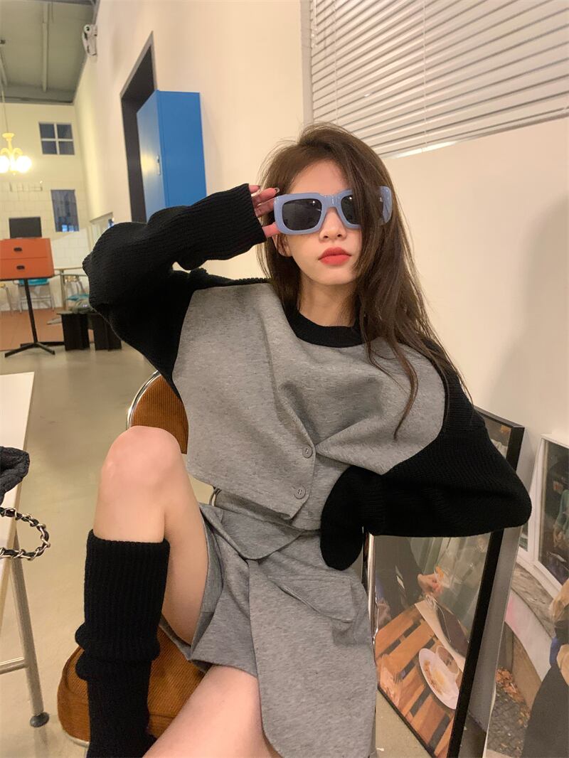 韓国ファッションNEWスプリングスタンダードサイドバックルウェストラウンドネックセーター ハイウェストワイドレッグパンツ スカート セット ロング レトロ 春物 Oネック ワイドパンツ 長袖 ウエスト muzly71546794918 | Neatly
