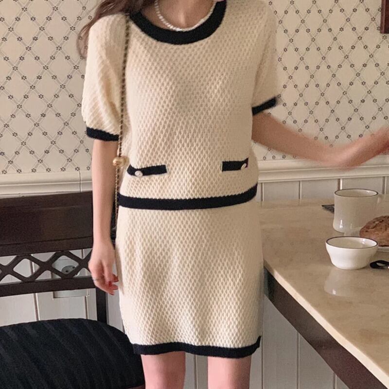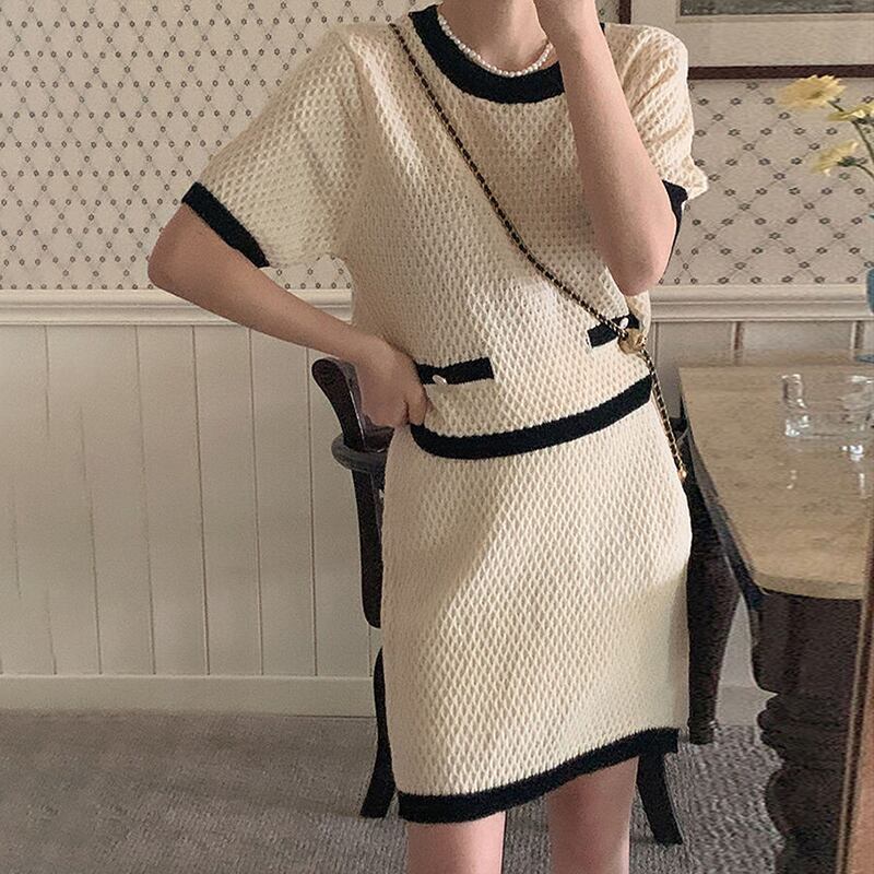 韓国ファッションNEWスプリングラウンドネックショート半袖スリーブトップス ウェスト薄手スカート レディース ハーフスリーブ 春物 Oネック ウエスト muzly19557872133 | Neatly
