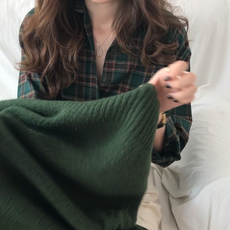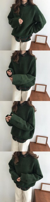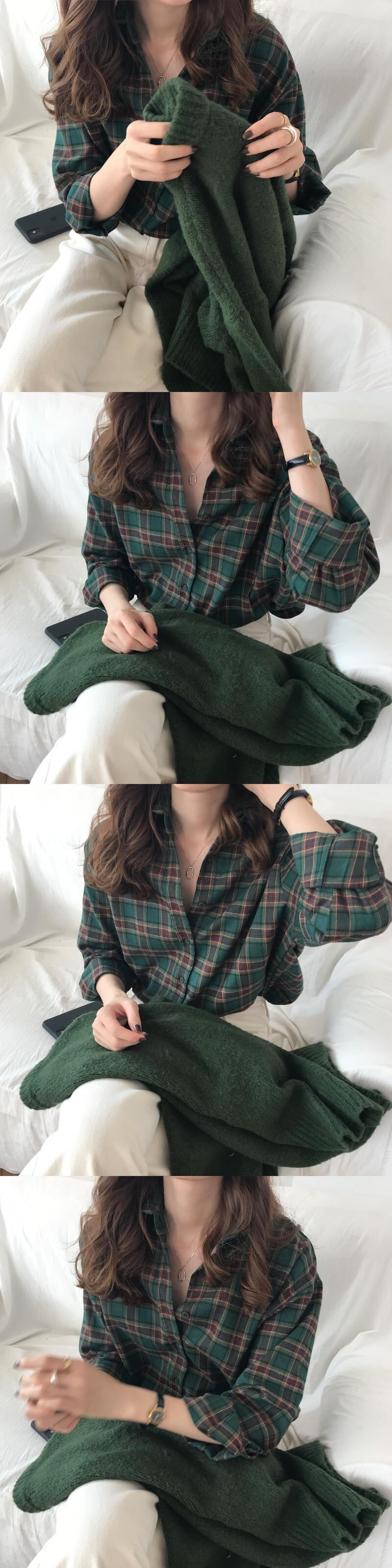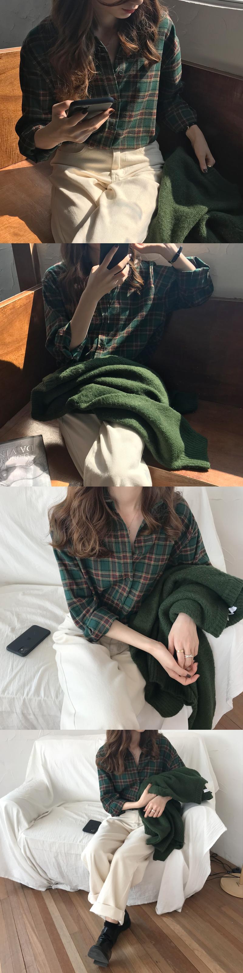 韓国ファッションNEW秋物ウィンタールーズラウンドネックニットセーター スタンダードグリーン格子柄シャツ ロング レトロ オータム 冬物 Oネック 長袖 muzly15911217457 | Neatly