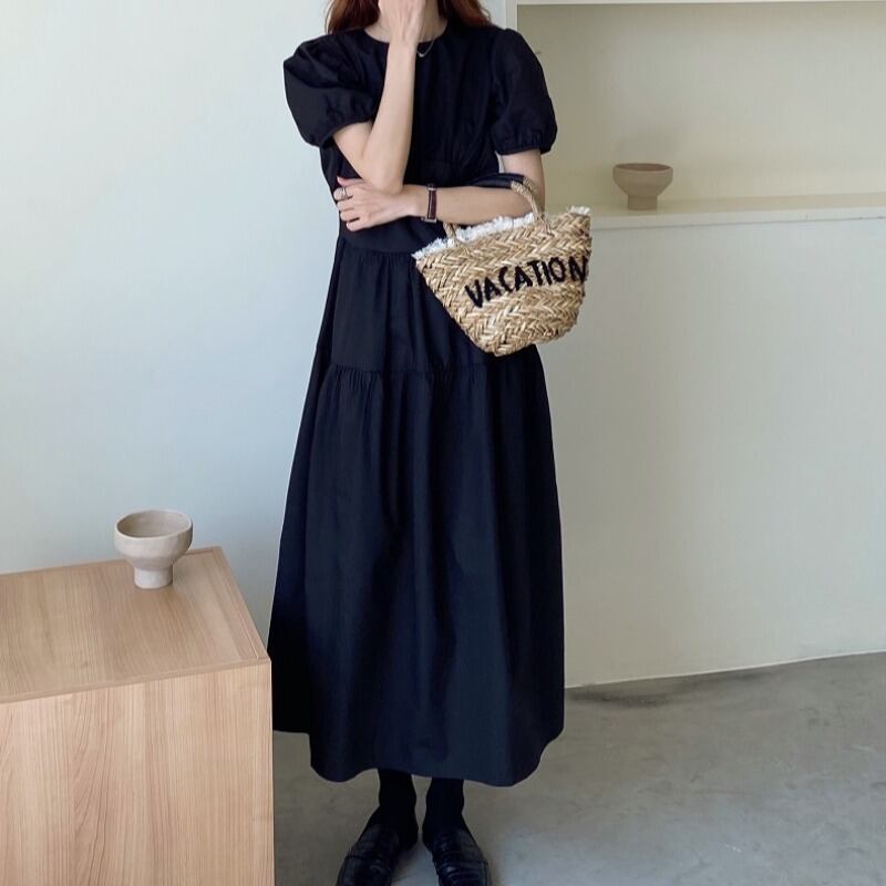 韓国ファッション夏服ソリッド カラーラウンドネックウェストスカート ロングミニ ワンピースワンピース 夏物 Oネック ソリッドカラー フラワーデザイン ウエスト muzly25584837758 | Neatly