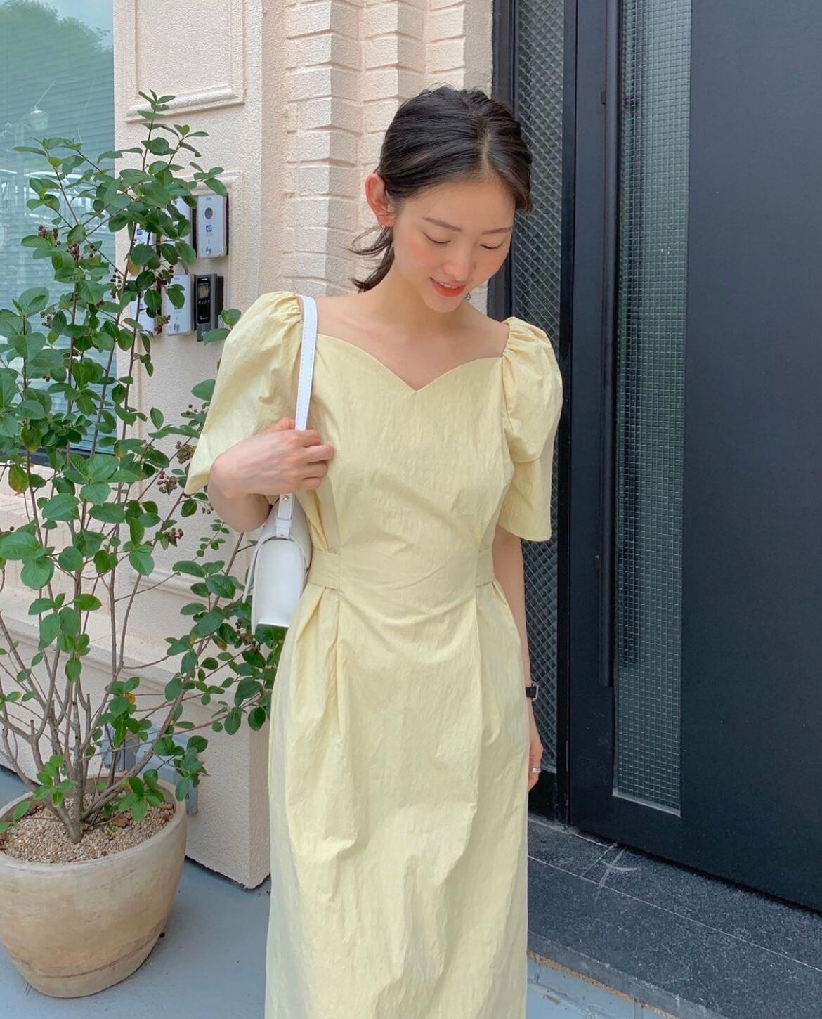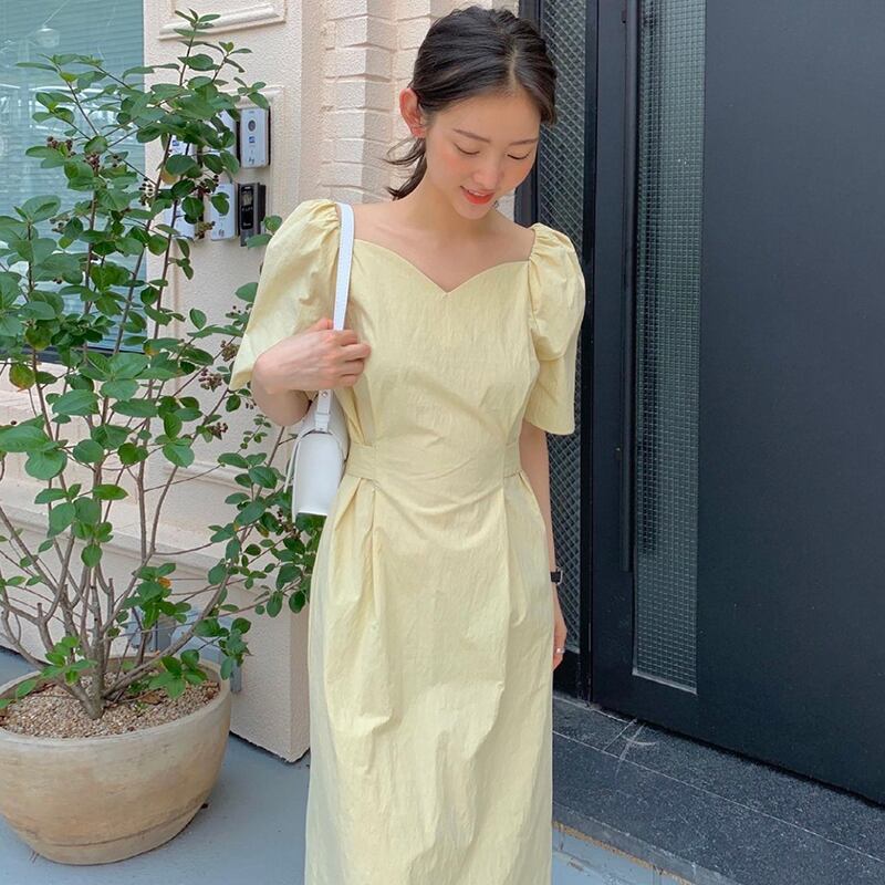 韓国ファッション夏服カラースリーブロングスカート ウェストミニ ワンピースワンピースレディース 大人ガーリー スウィート キュート カジュアル 夏物 スクウェア ウエスト muzly70872871293 | Neatly