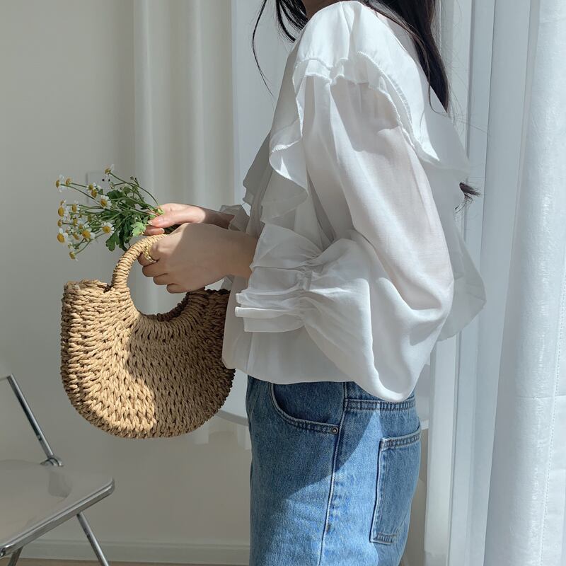 韓国ファッションスプリングスタンダードラウンドネックトップス ルーズ薄手シャツ ロング レトロ 大人ガーリー スウィート キュート カジュアル 春物 Oネック 長袖 muzly38776668298 | Neatly