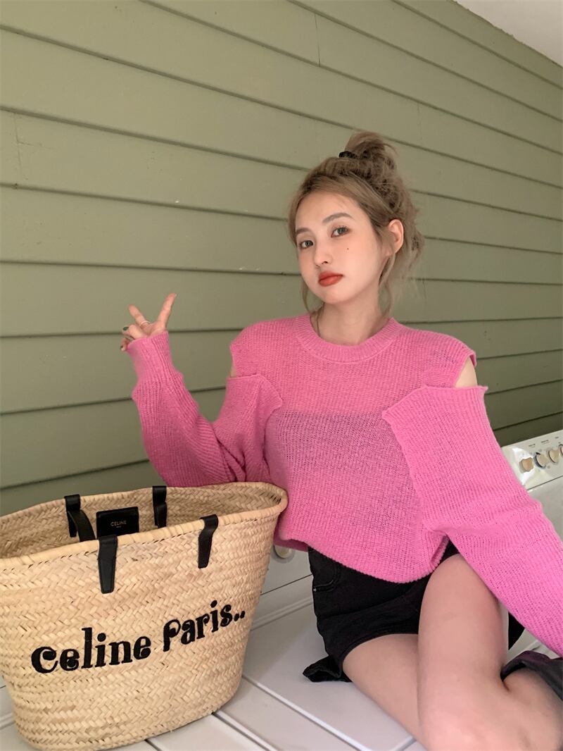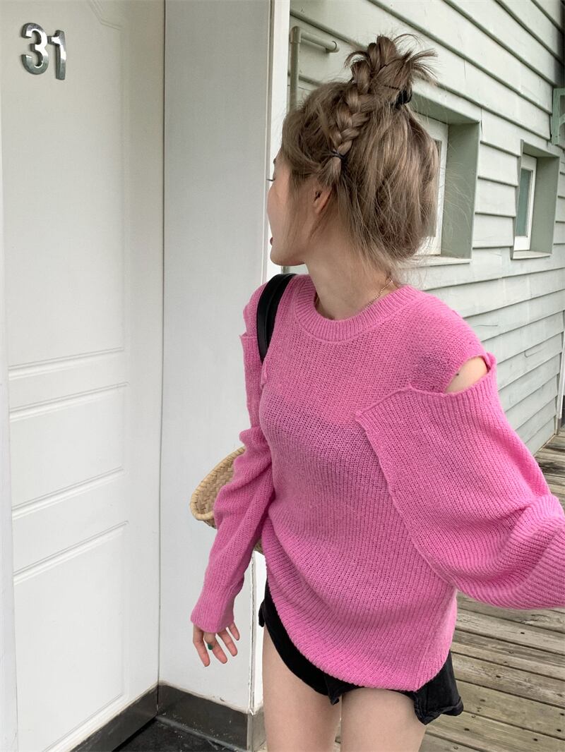 韓国ファッションスプリングソリッド カラープルオーバー ラウンドネックセーター 薄手ルーズブラウス レディース ロング 春物 Oネック ソリッドカラー 長袖 muzly26089892490 | Neatly