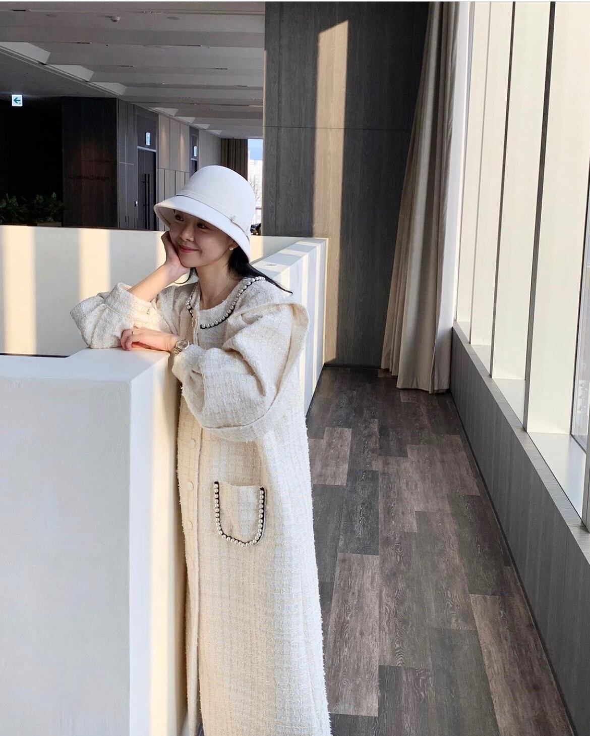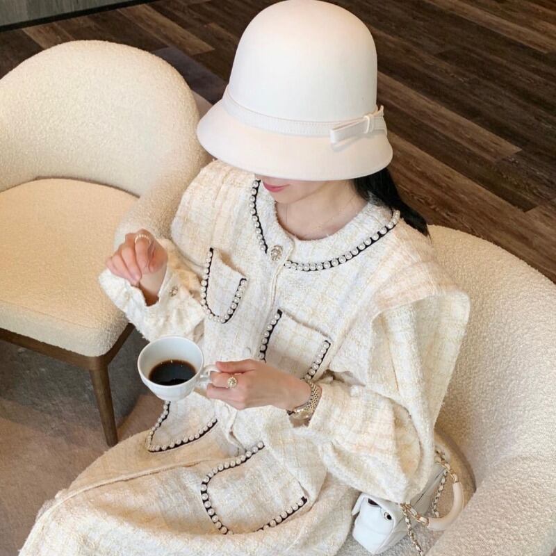 韓国ファッション秋物ウィンタースタンダードラウンドネックロングスカート パールワンピースレディース レトロ エレガント オータム 冬物 Oネック 真珠 ポケット多め マルチポケット 長袖 muzly23256223349 | Neatly