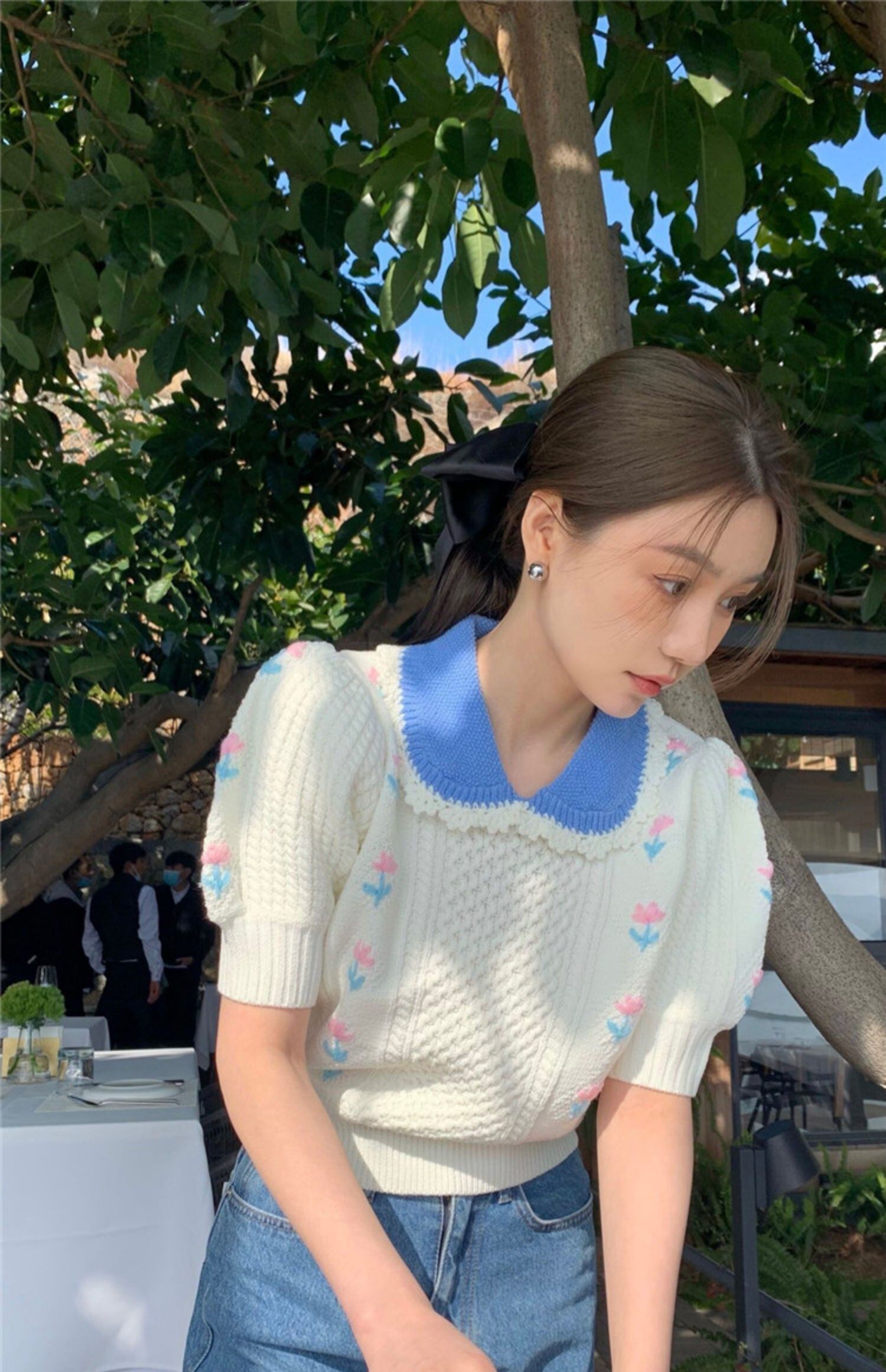 色:白い,青