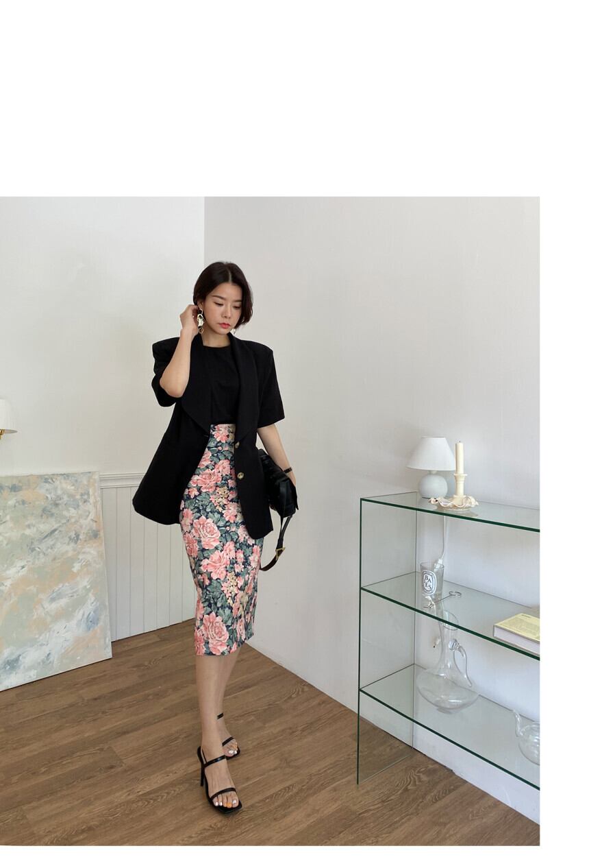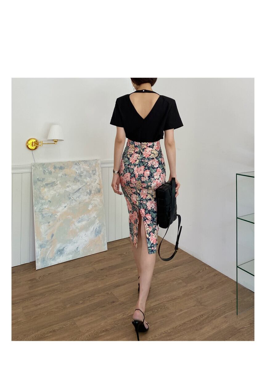 韓国ファッションNEW夏服ジャケット ラウンドネックブラックTシャツハイウェストウェストフローラルスカート レディース 夏物 花柄 Oネック ウエスト muzly13291055338 | Neatly