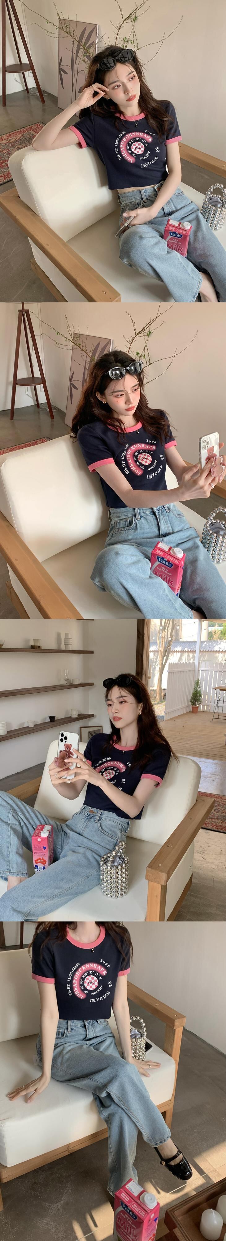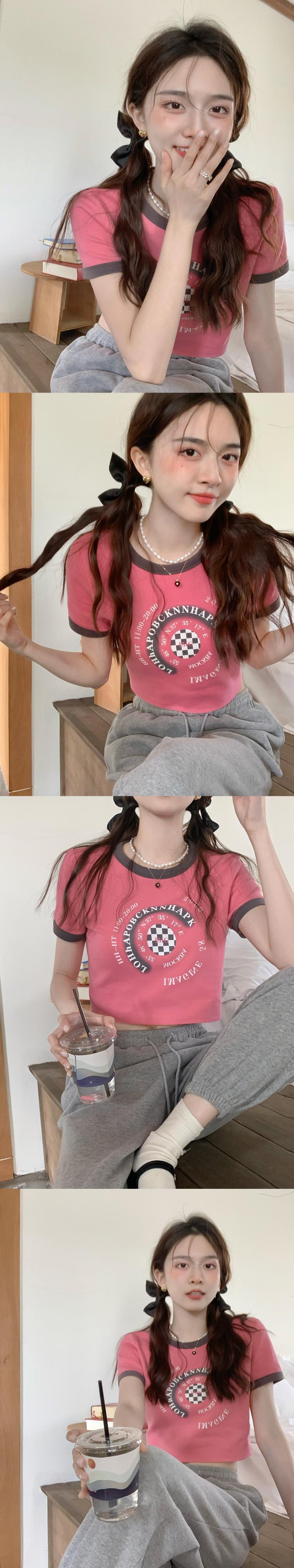 韓国ファッションNEW夏服スタンダードスタイルカラーラウンドネックプリントショートスリム半袖スリーブTシャツレディース レトロ ハーフスリーブ 夏物 Oネック muzly41704983521 | Neatly