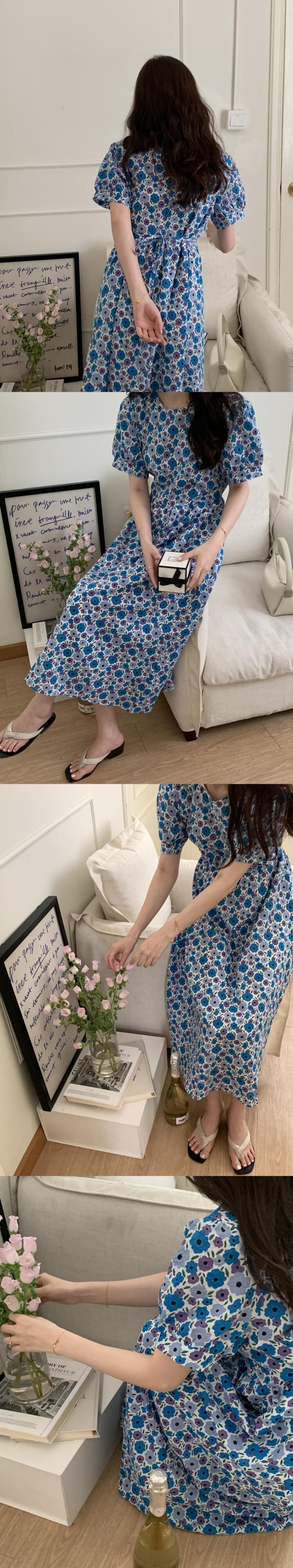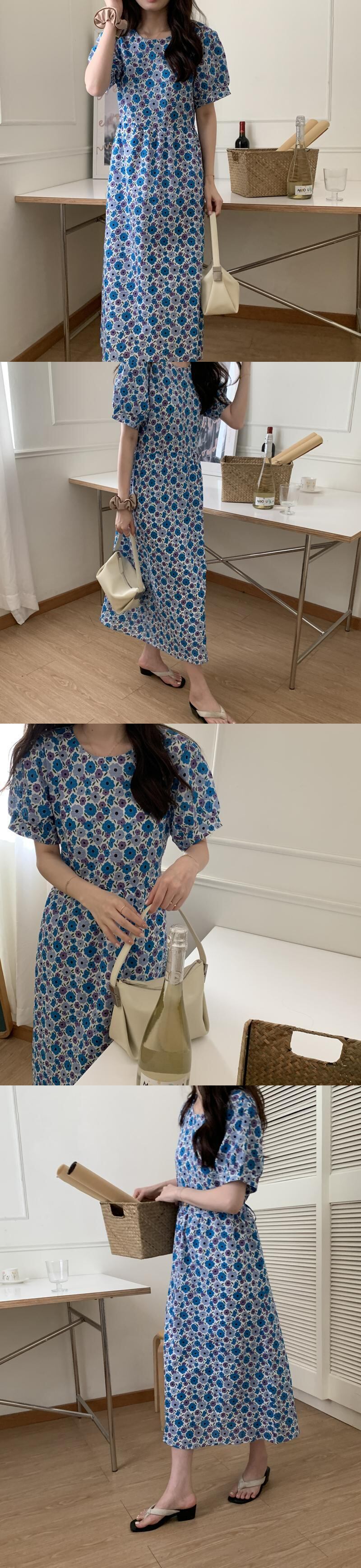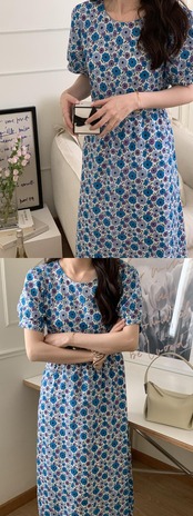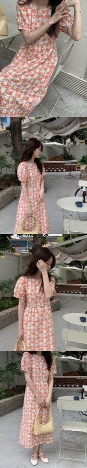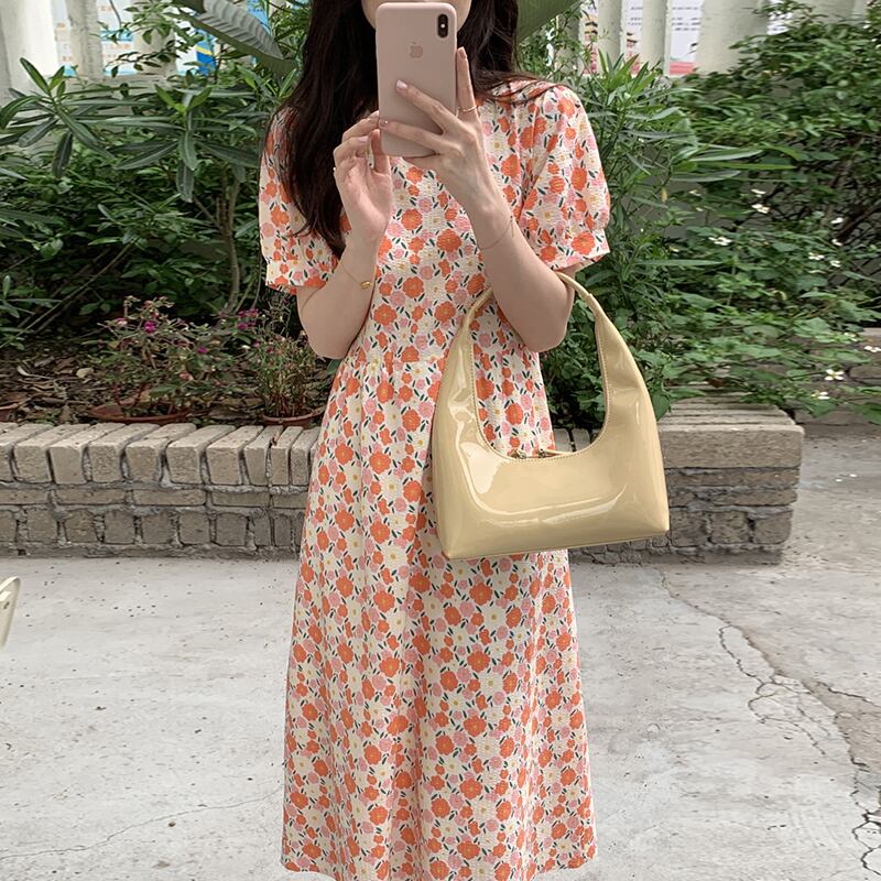 韓国ファッション夏服スタンダードラウンドネックフローラルスカート ウェスト薄手ミニ ワンピースワンピースレディース レトロ 夏物 花柄 Oネック ウエスト ミドル丈 muzly49260061180 | Neatly