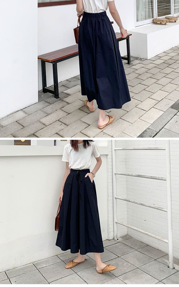 韓国ファッション夏服ギャザーストレッチウェストルーズロングプリーツワイドレッグパンツ レディース エラスティック 伸縮 夏物 ワイドパンツ ウエスト muzly53448046594 | Neatly