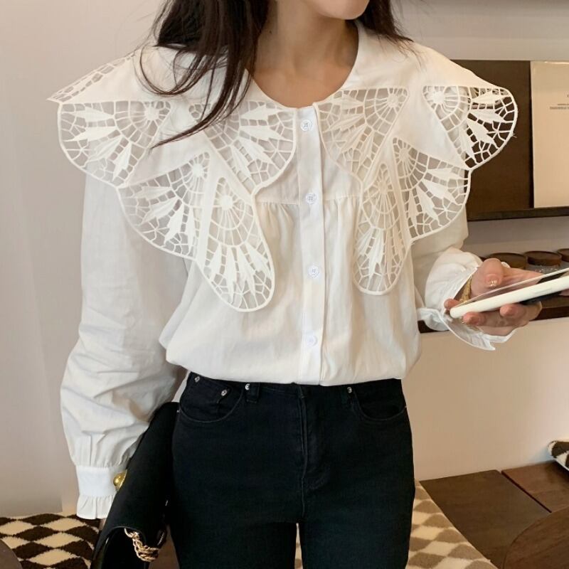 韓国ファッションスプリングスタンダードFlowerデザイン カラールーズ薄手シャツ ロング レトロ 大人ガーリー スウィート キュート カジュアル 春物 フラワーデザイン 長袖 muzly50966053850 | Neatly