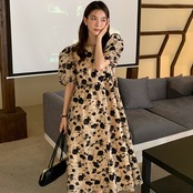 韓国ファッション夏服スタンダードラウンドネックFlowerデザイン ロングスカート プリーツウェスト薄手ミニ ワンピースワンピースレディース レトロ レース エレガント 夏物 Oネック レースアップ フラワーデザイン ウエスト muzly1258403 | Neatly