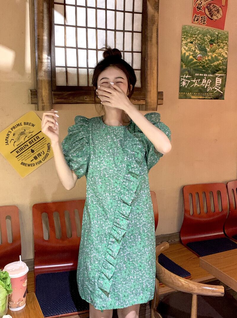 韓国ファッション夏服ラウンドネックウェスト薄手フローラルミニ ワンピースワンピース 大人ガーリー スウィート キュート カジュアル 夏物 花柄 Oネック ウエスト muzly27508384614 | Neatly