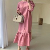 韓国ファッション夏服スタンダードラウンドネックラッフルスカート ロングルーズカジュアル薄手ミニ ワンピースワンピースレディース レトロ 夏物 Oネック muzly98897119244 | Neatly