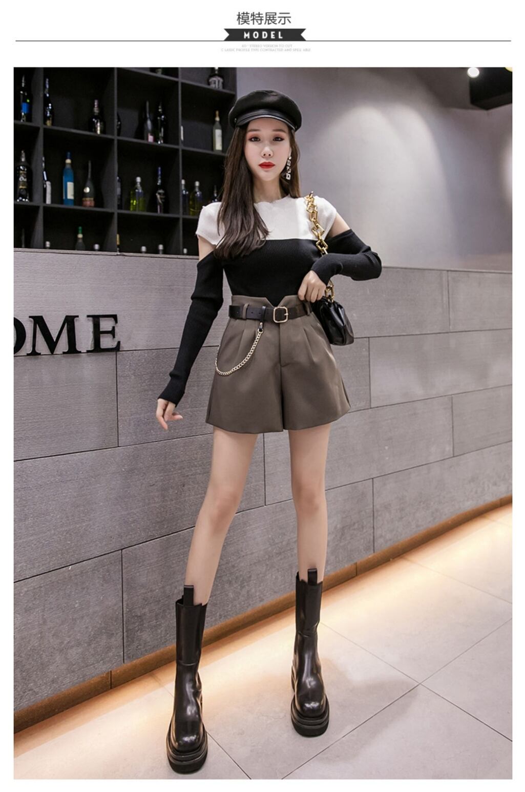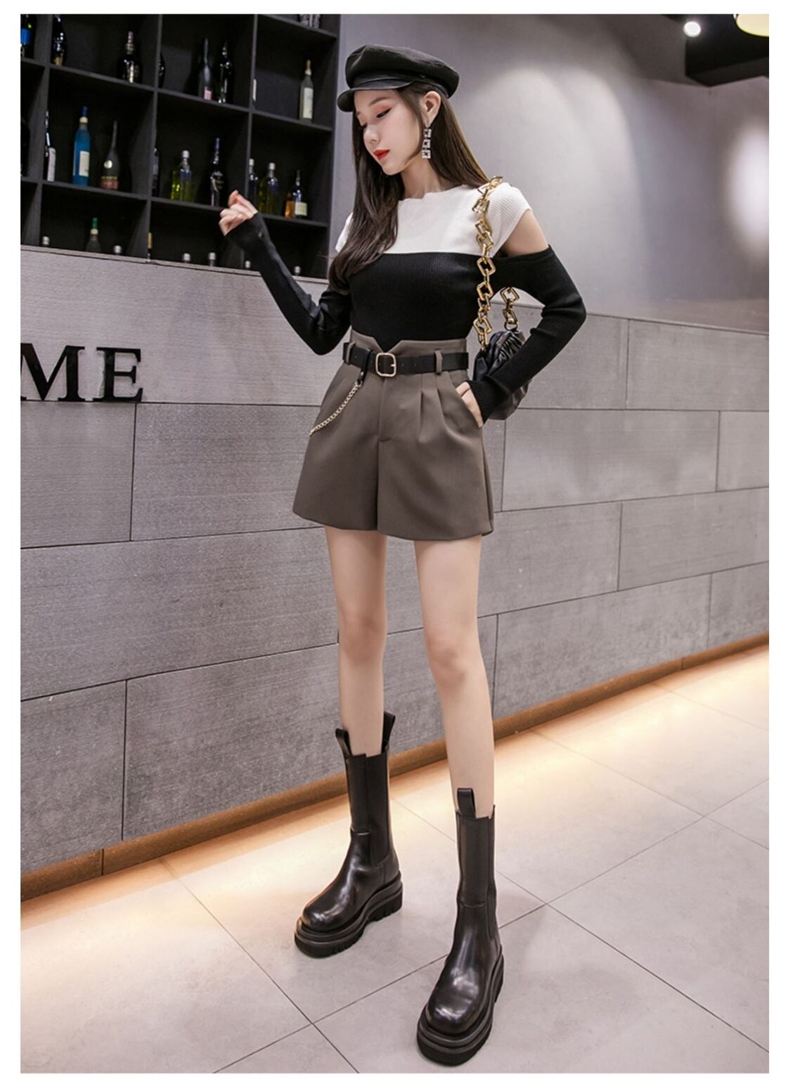 ブラックショーツ 秋物ウィンターブーツパンツ ハイウェストウェストワイドレッグルーズカジュアル 靴 シューズ オータム 冬物 ワイドパンツ ウエスト mengruling46825611788 | Neatly