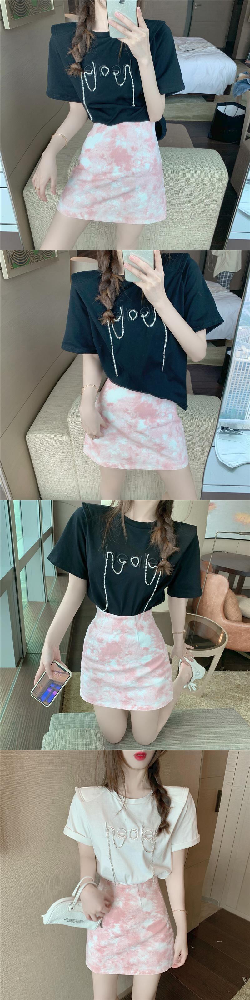 色:ブラックトップ+ピンクスカート,グレーのトップス+ブルーのスカート,ホワイトトップ+ピンクのスカート