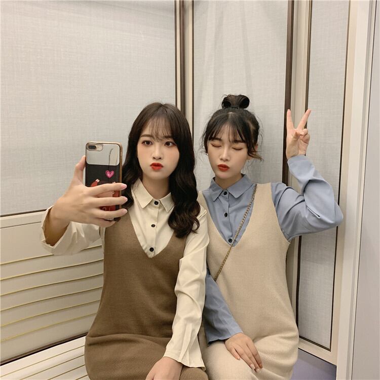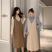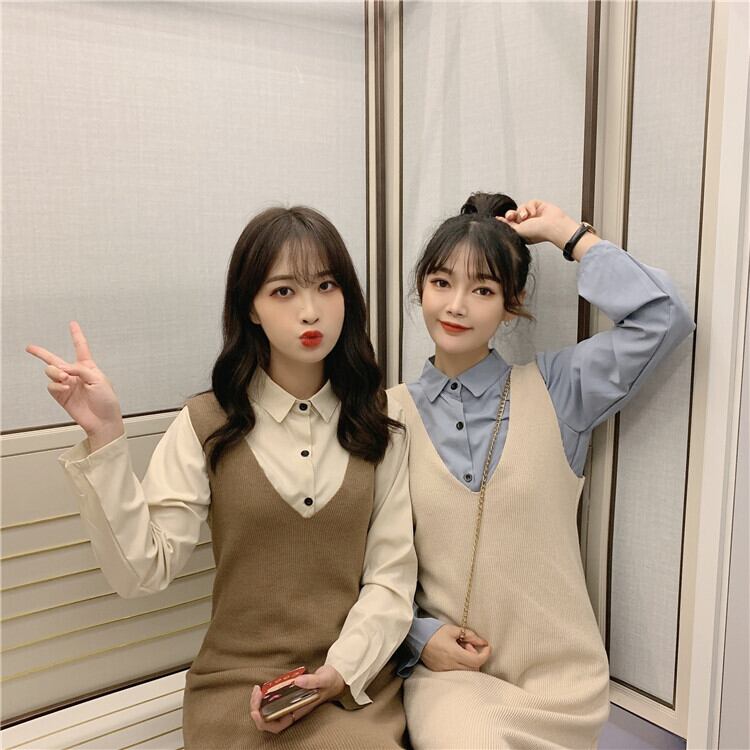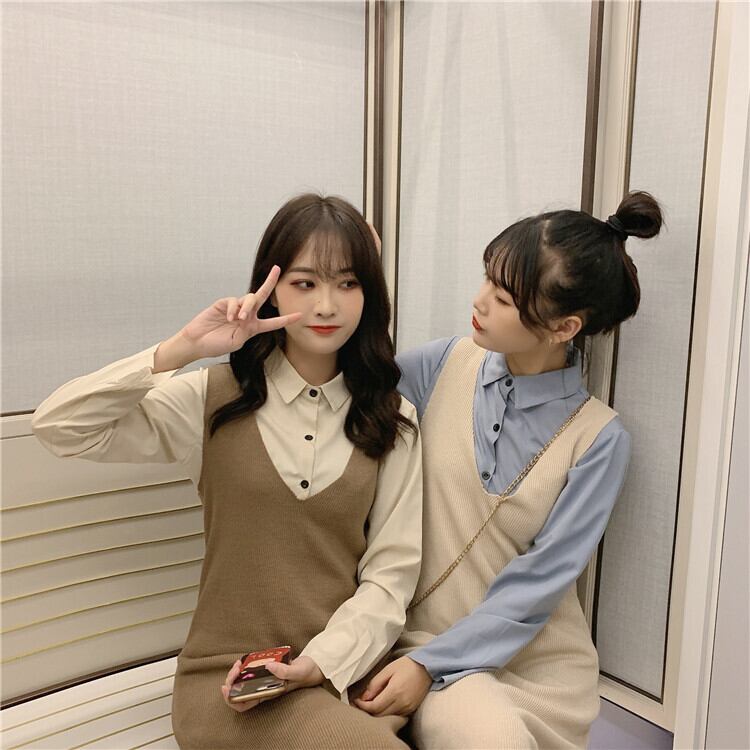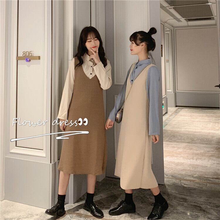色:アプリコットシャツ+カーキワンピース,ブルーシャツ+アプリコットドレス
