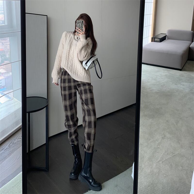色:米あんずセーター,赤いセーター,ブルーチェック柄パンツ:M,コーヒーチェックパンツ