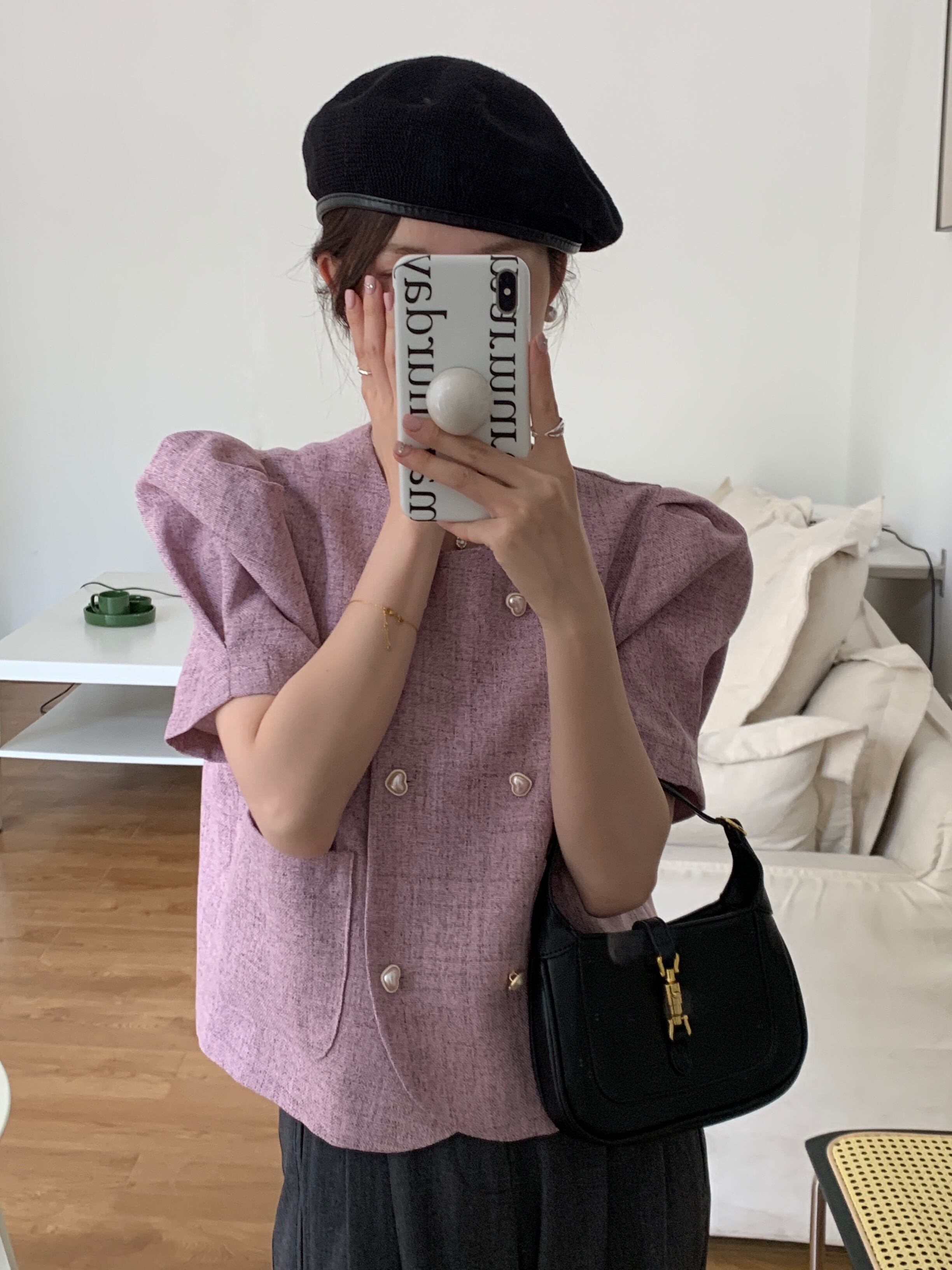 色:紫の,黒