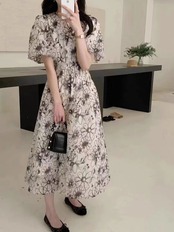 韓国ファッション夏服ラウンドネックFlowerデザイン スカート ロングプリーツウェストミニ ワンピースワンピース 大人ガーリー スウィート キュート カジュアル エレガント 夏物 Oネック フラワーデザイン ウエスト muzly15696381609 | Neatly