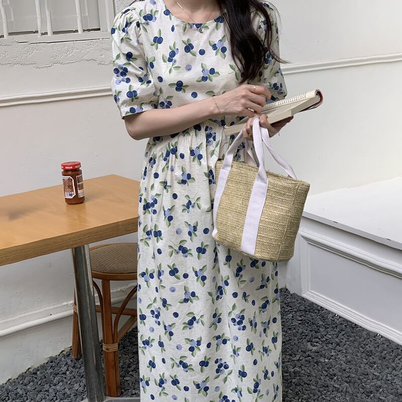 韓国ファッション夏服ラウンドネックスカート 薄手スリーブフローラルワンピースレディース エレガント 夏物 花柄 Oネック フラワーデザイン ミドル丈 muzly94683031356 | Neatly