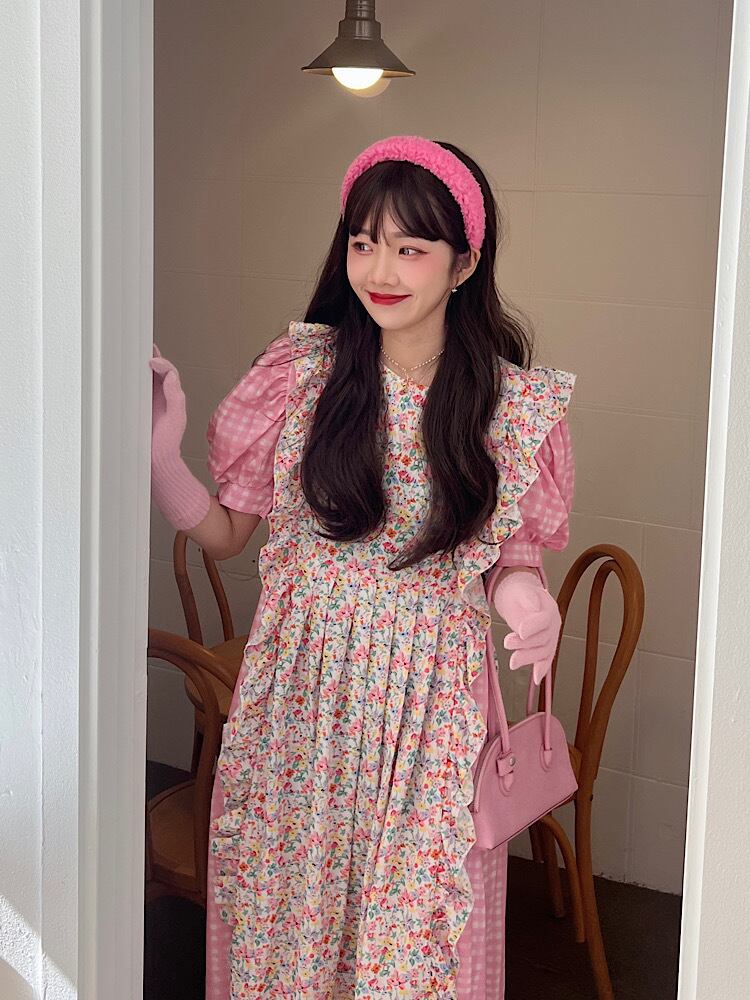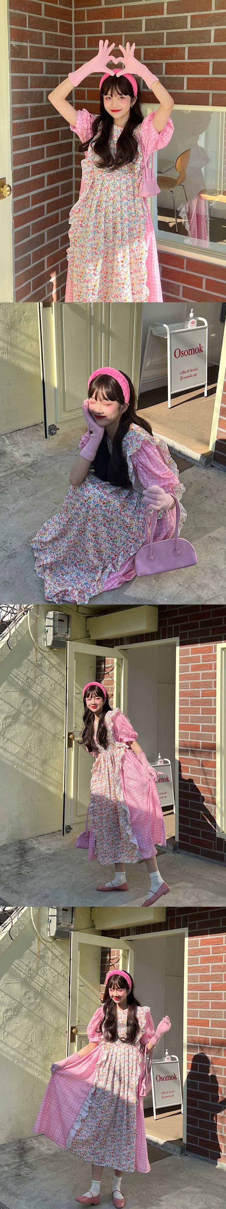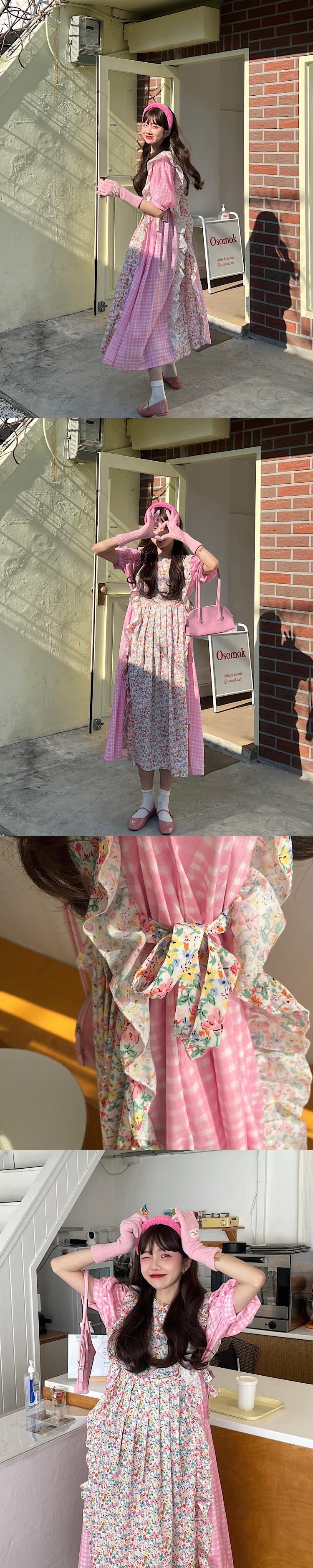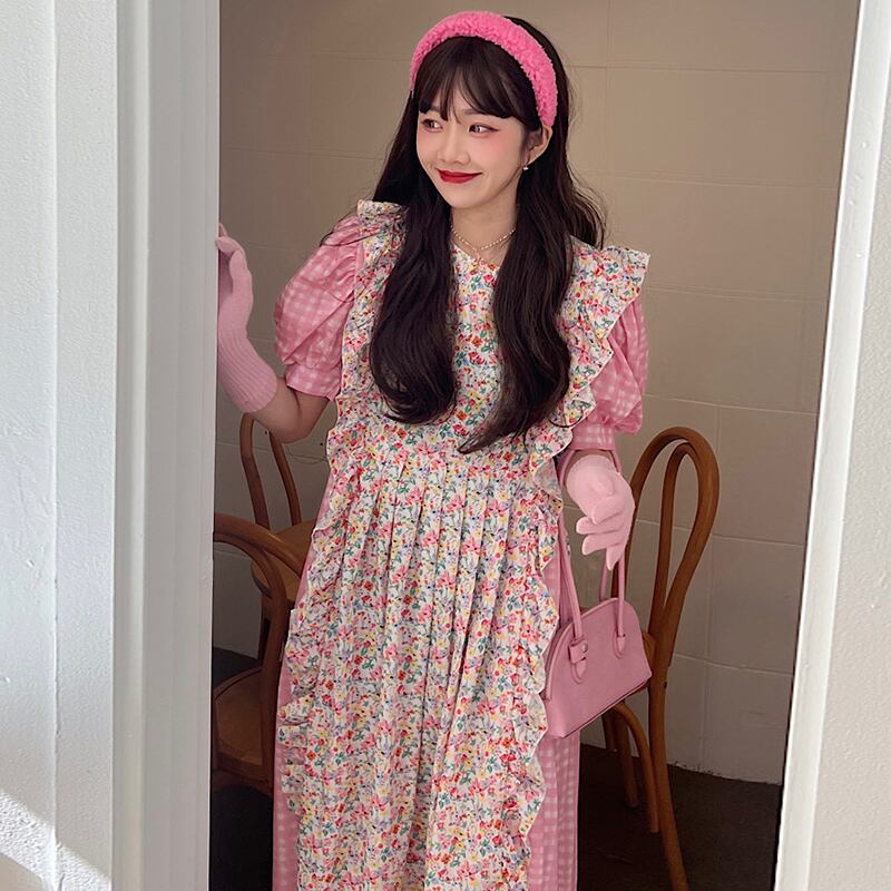 韓国ファッション夏服フローラルロングウェスト格子柄ミニ ワンピースワンピース レース 大人ガーリー スウィート キュート カジュアル 夏物 花柄 レースアップ ステッチ ウエスト muzly66725390428 | Neatly