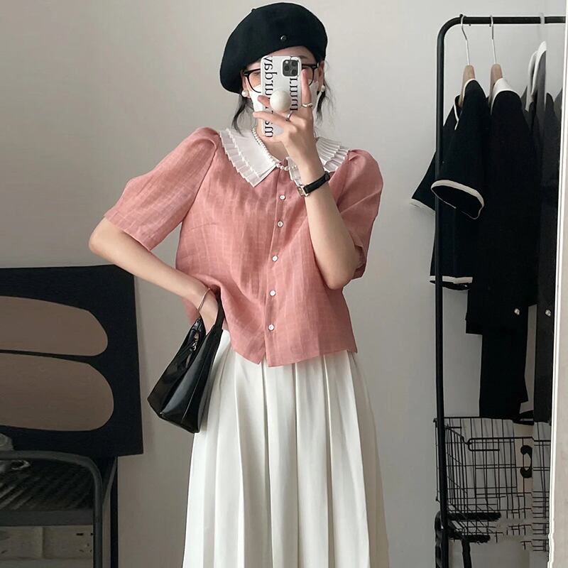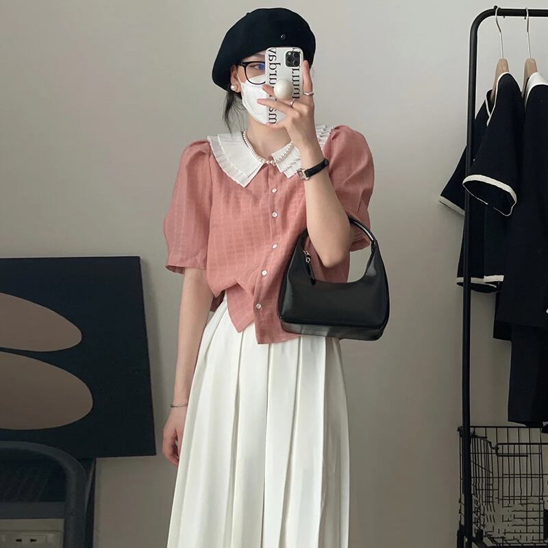 韓国ファッションNEW夏服プリーツカラーシャツ ハイウェストウェストスカート レディース 大人ガーリー スウィート キュート カジュアル 夏物 ウエスト ミドル丈 muzly63225629407 | Neatly