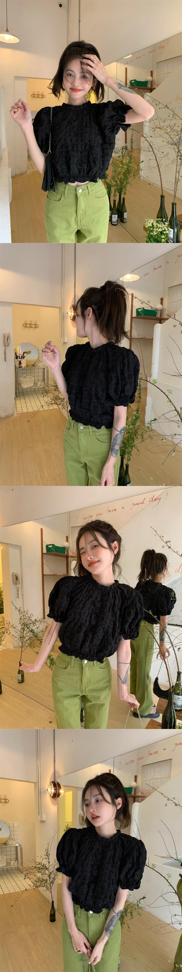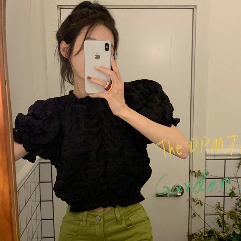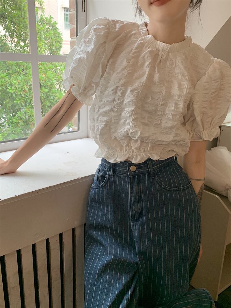 韓国ファッション夏服ラウンドネックプリーツショートトップス ルーズシャツ レディース 大人ガーリー スウィート キュート カジュアル 夏物 Oネック muzly59893045905 | Neatly
