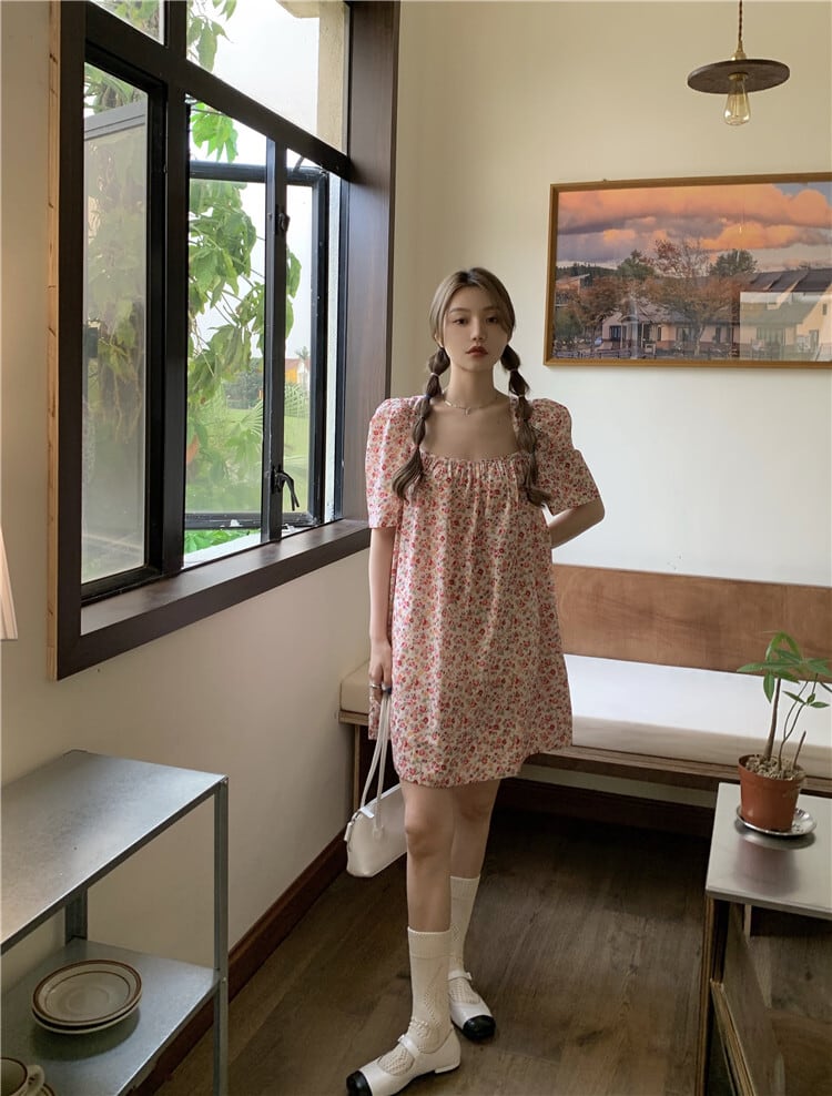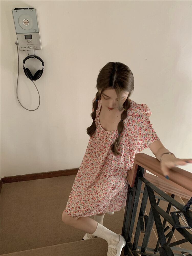 韓国ファッション夏服フローラルスカート ルーズスリムカラーミニ ワンピースワンピース 大人ガーリー スウィート キュート カジュアル 夏物 花柄 スクウェア muzly72458522543 | Neatly