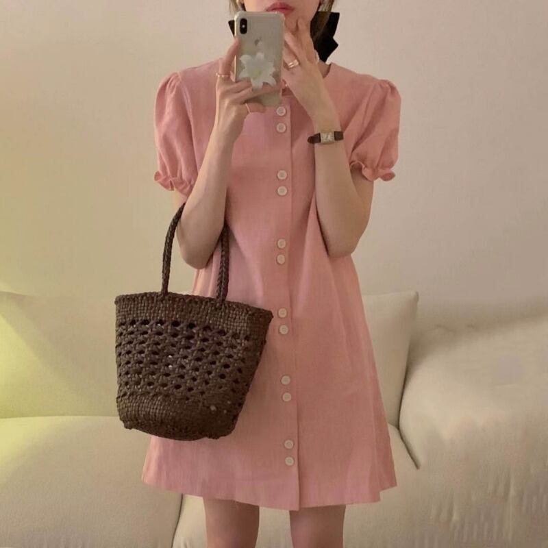 韓国ファッション夏服ラウンドネックウェストミニ ワンピースワンピースレディース 大人ガーリー スウィート キュート カジュアル 夏物 Oネック ウエスト muzly94837189108 | Neatly