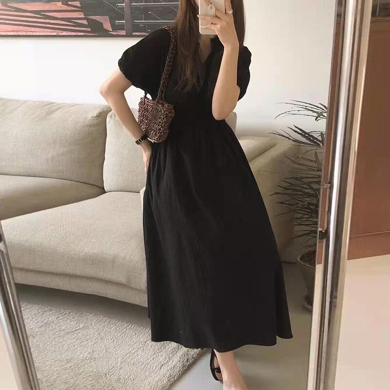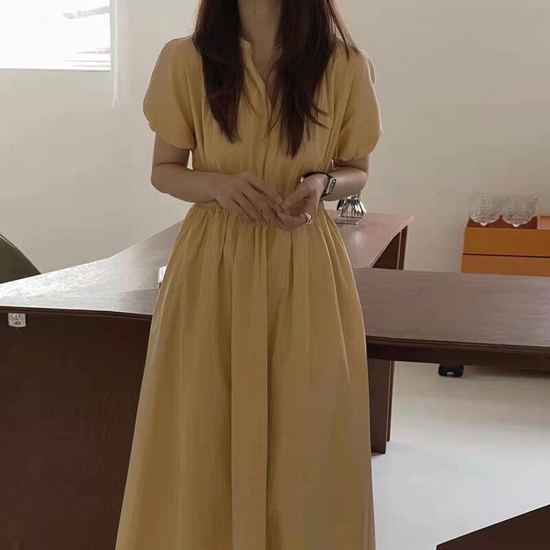 韓国ファッションNEW夏服スタンダードVネックスカート ストレッチウェスト薄手ミニ ワンピースワンピース レトロ エラスティック 伸縮 夏物 ウエスト ミドル丈 muzly64041860855 | Neatly