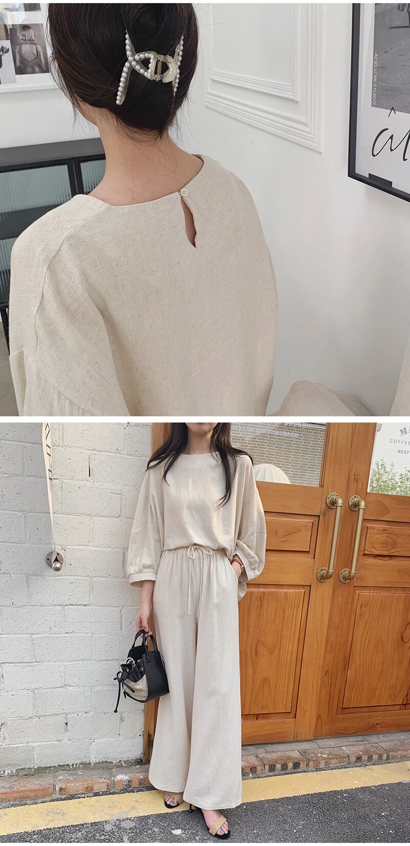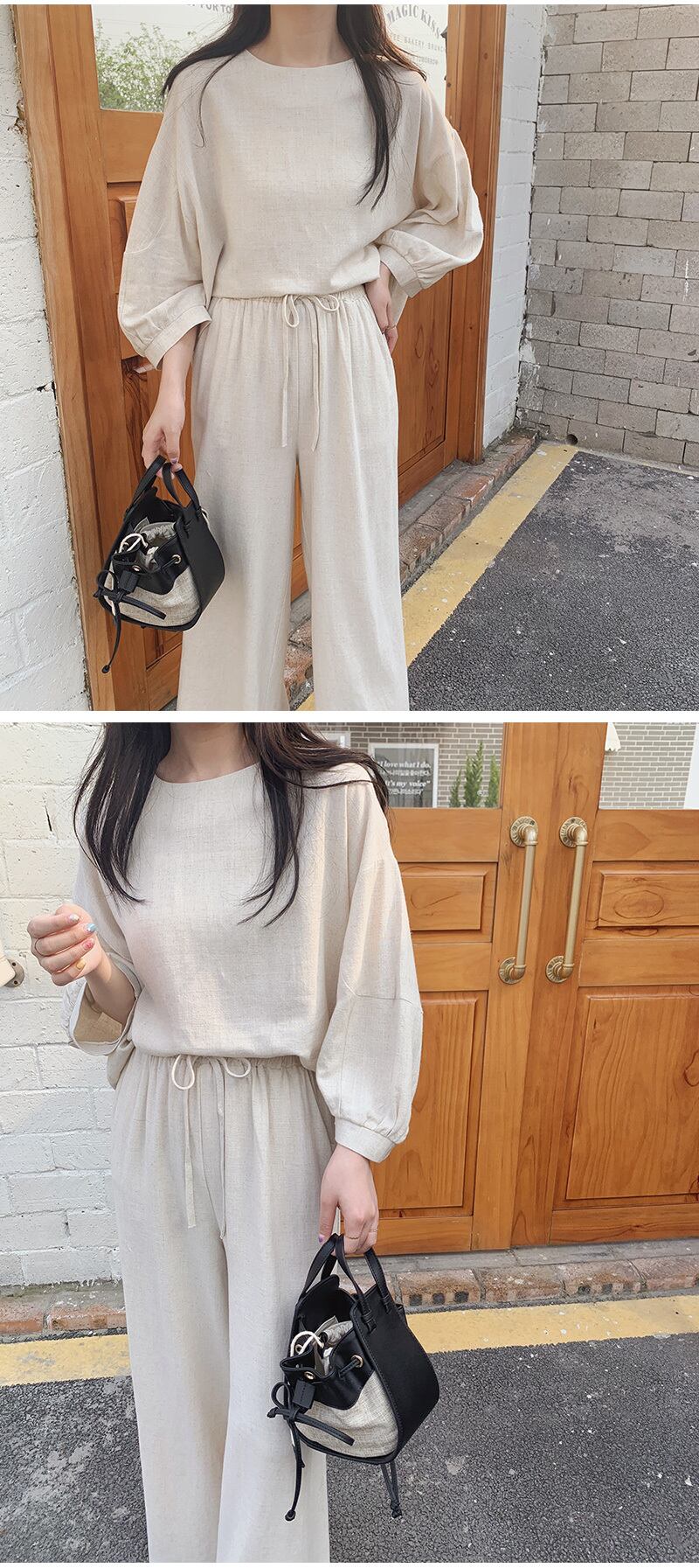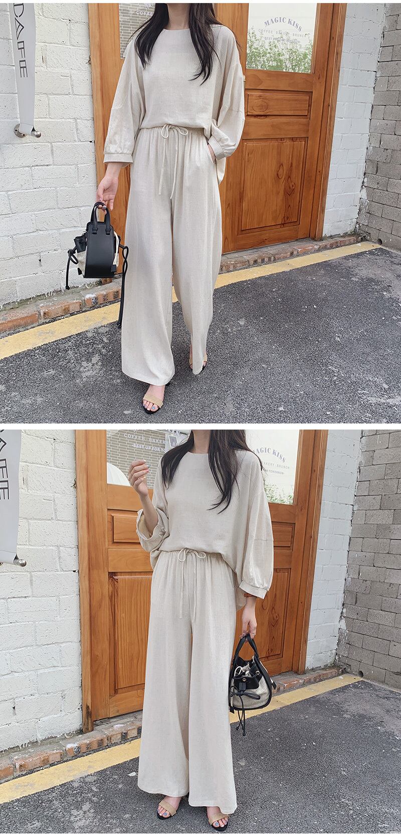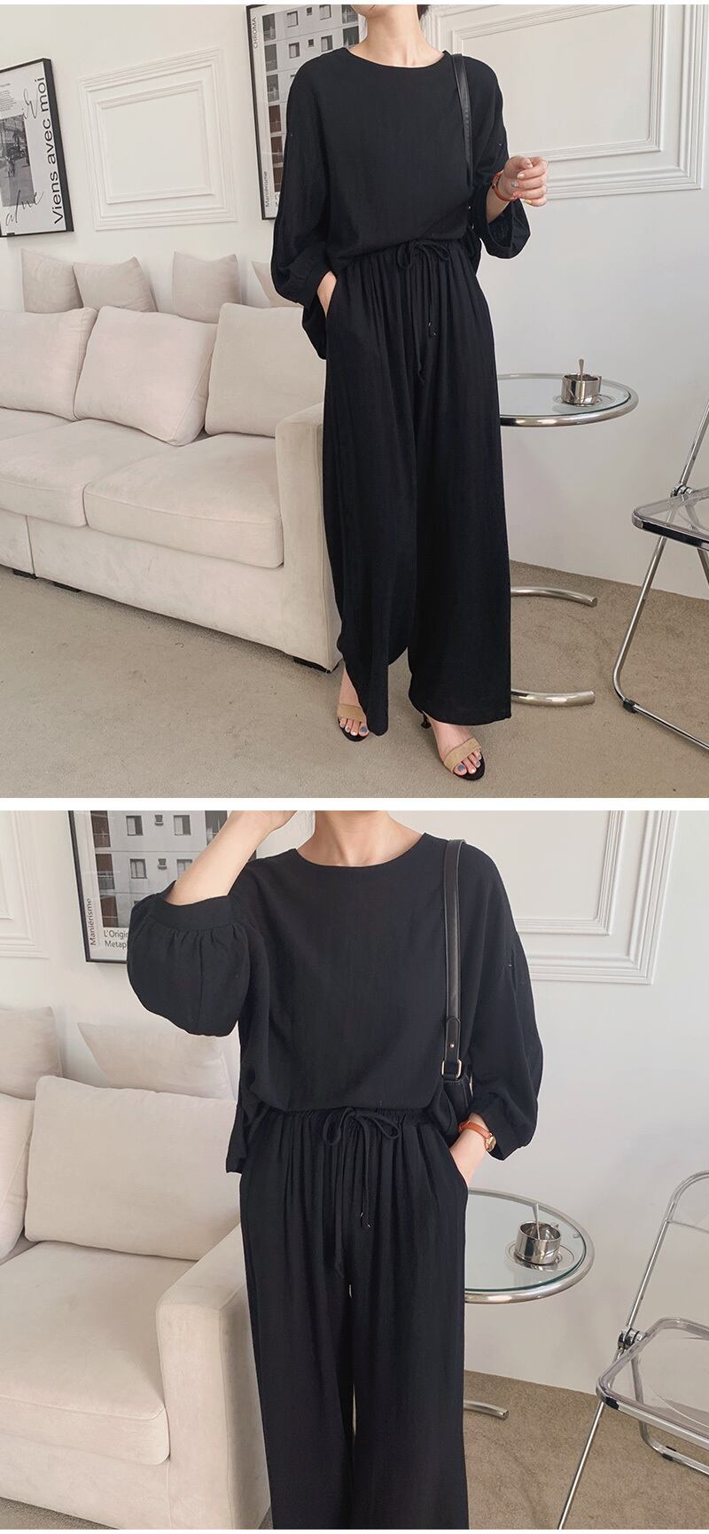 韓国ファッションNEW夏服ラウンドネックルーズシャツ ストレッチハイウェストウェストワイドレッグパンツ レディース エラスティック 伸縮 夏物 Oネック ワイドパンツ ウエスト muzly9847601564 | Neatly