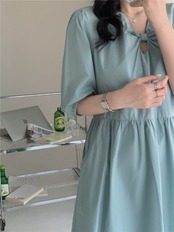 韓国ファッション夏服リボンラウンドネックルーズロングウェスト薄手ミニ ワンピースワンピース 大人ガーリー スウィート キュート カジュアル 夏物 Oネック ウエスト muzly40530462363 | Neatly