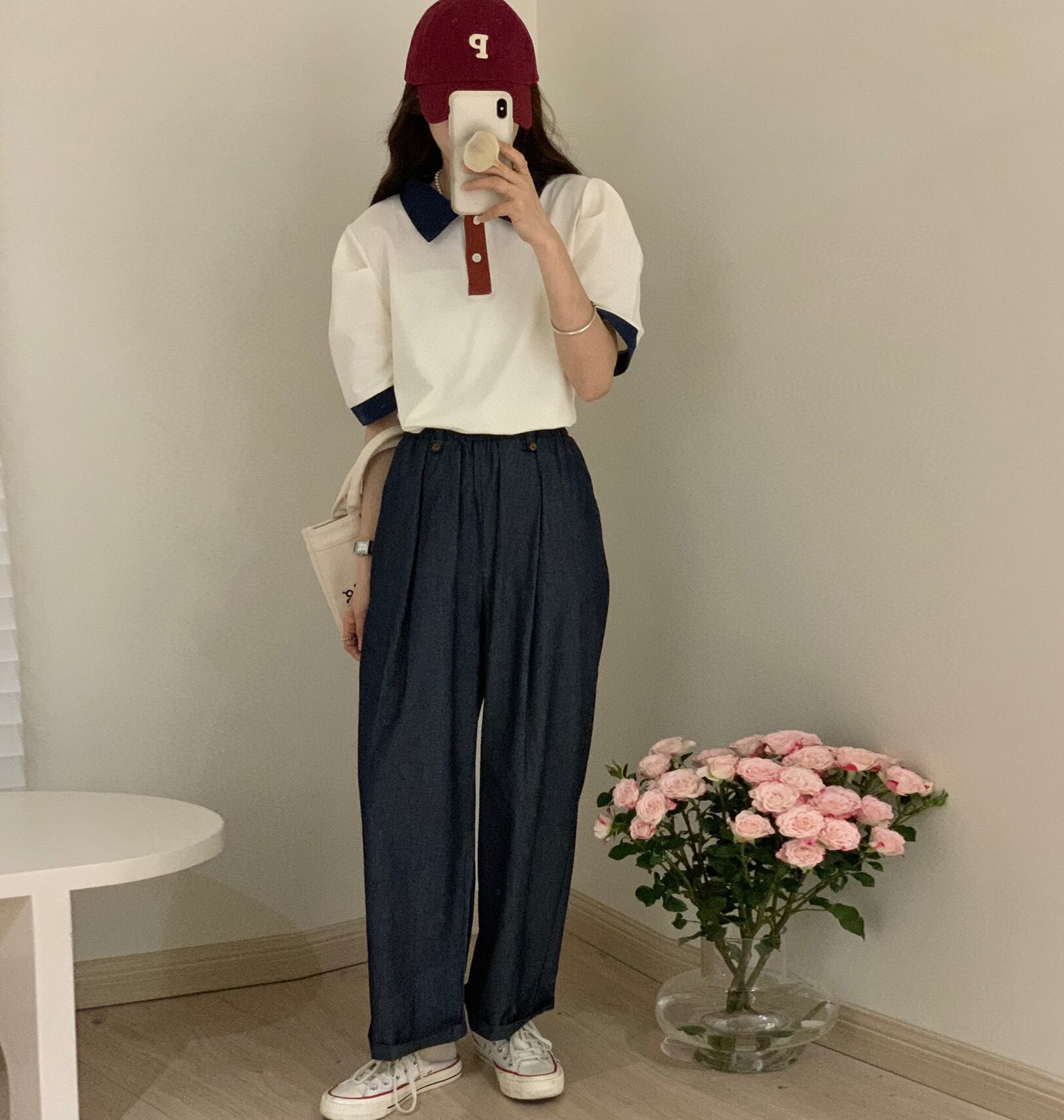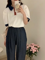 色:コート,ネイビーブルーパンツ