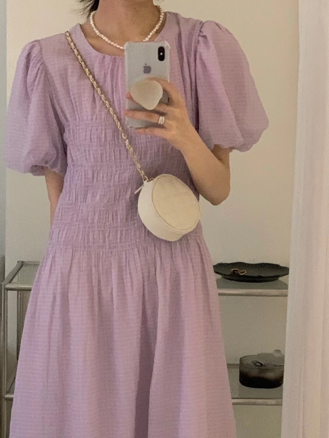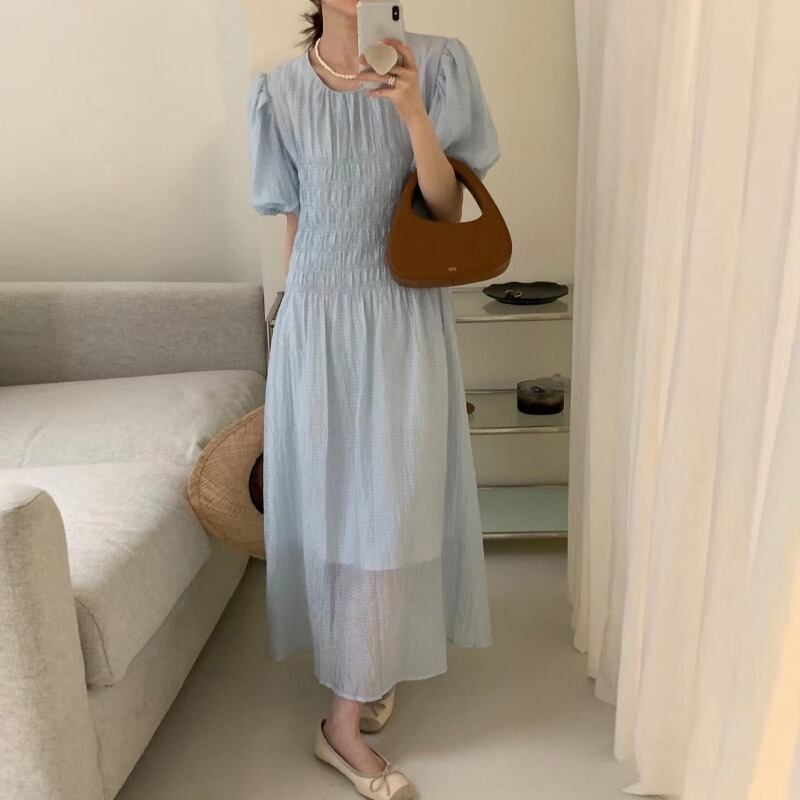 韓国ファッション夏服ミニ ワンピースワンピースレディース ロング 大人ガーリー スウィート キュート カジュアル プリーツ 夏物 Oネック ウエスト muzly65815489513 | Neatly