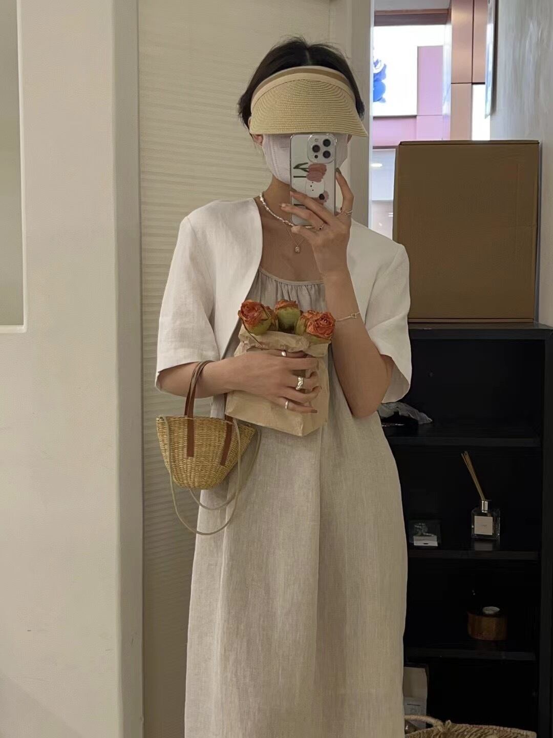 色:ブラウンコート,白いコート,アプリコットドレス,麻の灰色のドレス