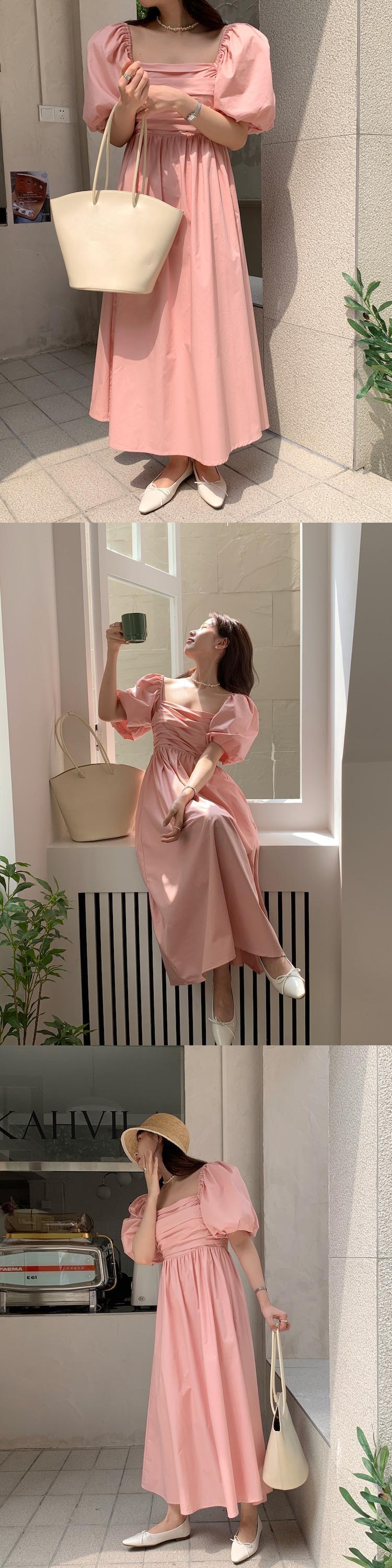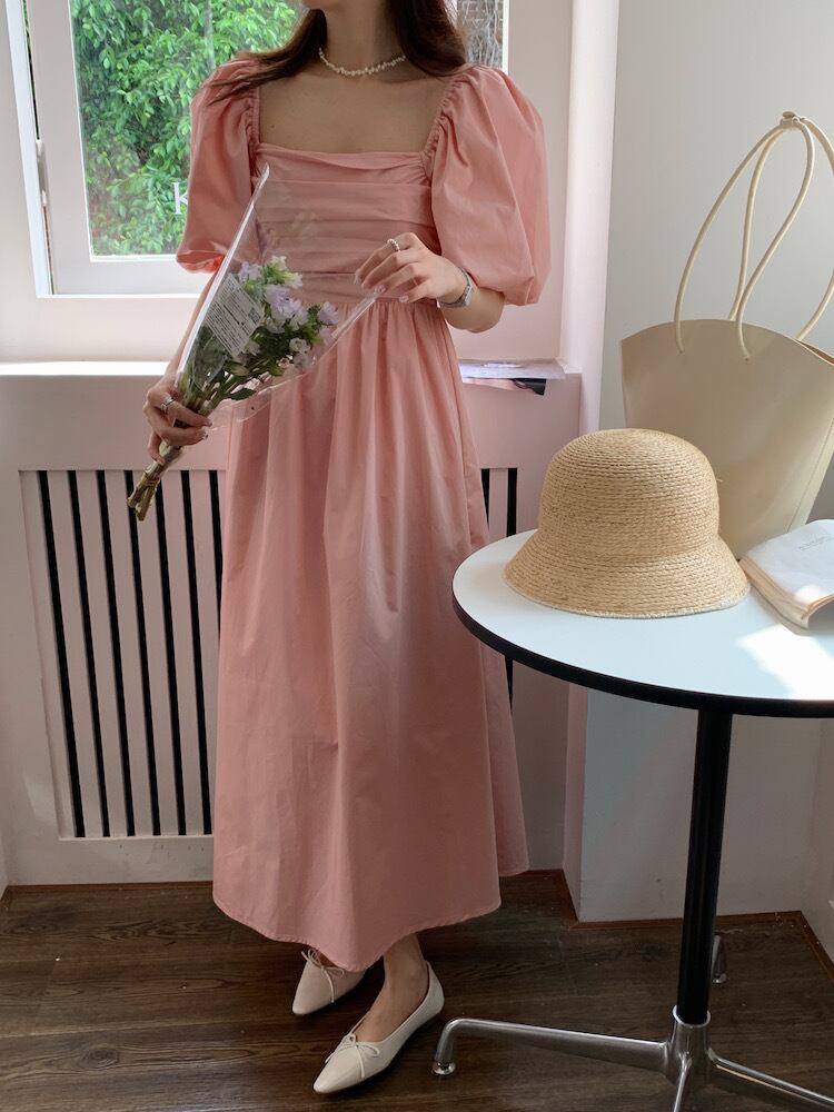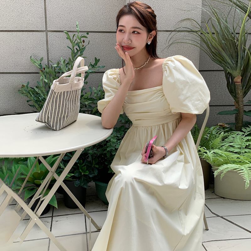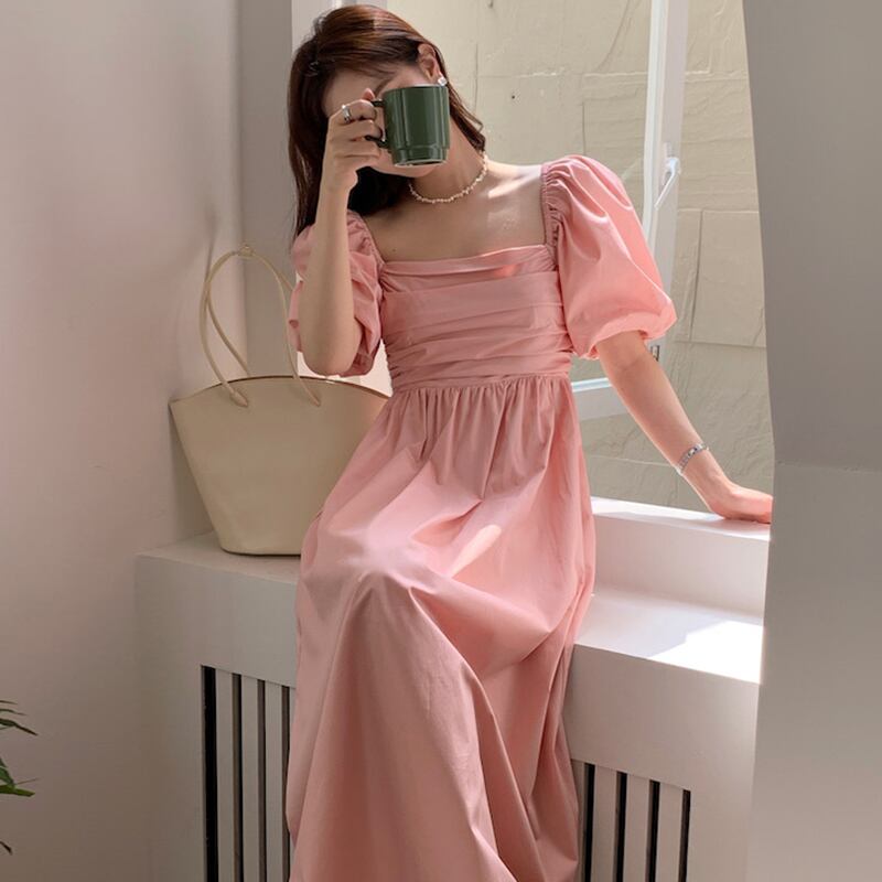 韓国ファッション夏服プリーツウェストスリーブワンピースレディース 大人ガーリー スウィート キュート カジュアル 夏物 スクウェア ウエスト ミドル丈 muzly2191696211 | Neatly
