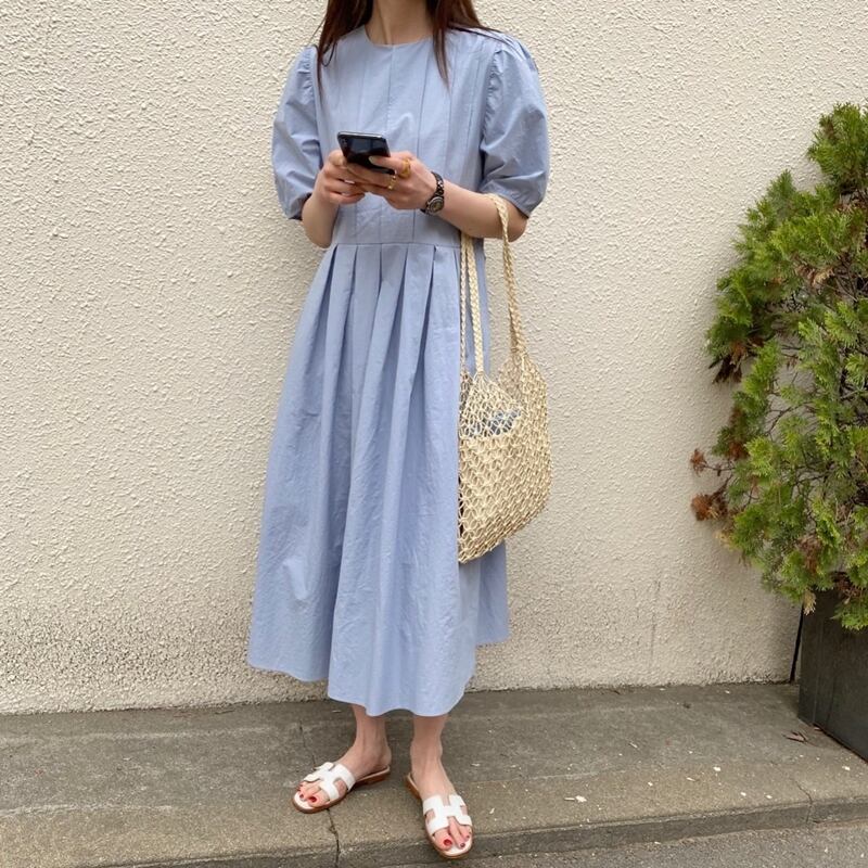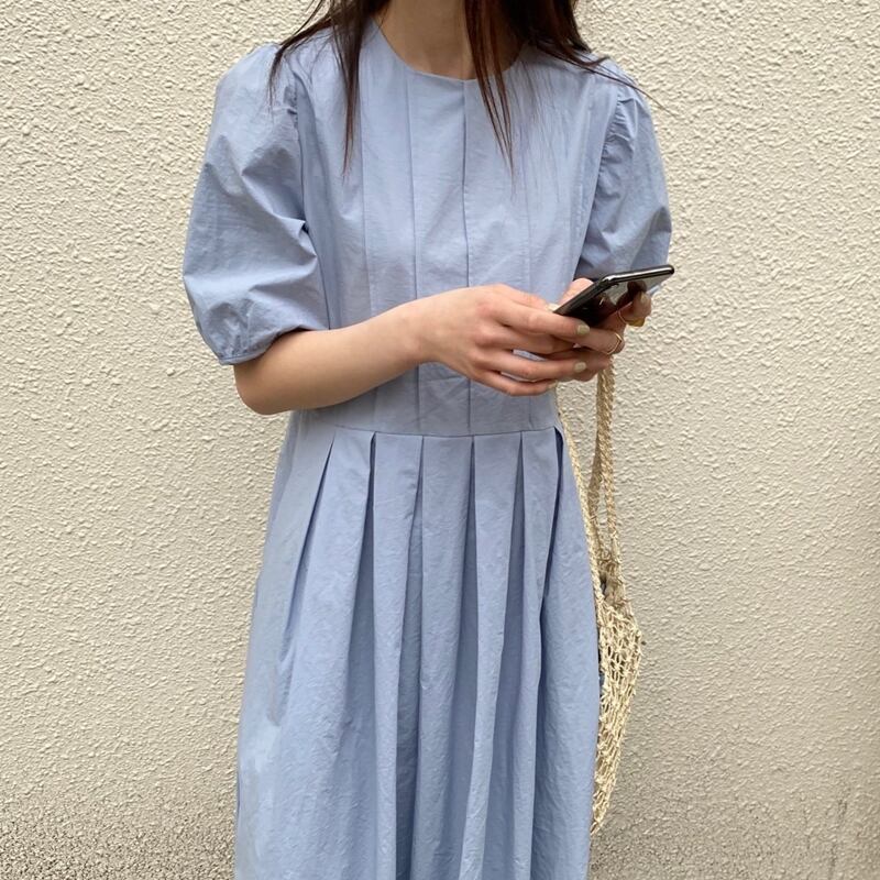 韓国ファッションラウンドネックプリーツロングスカート ハイウェストウェスト半袖スリーブワンピースレディース ショート ハーフスリーブ Oネック ウエスト muzly76562747397 | Neatly