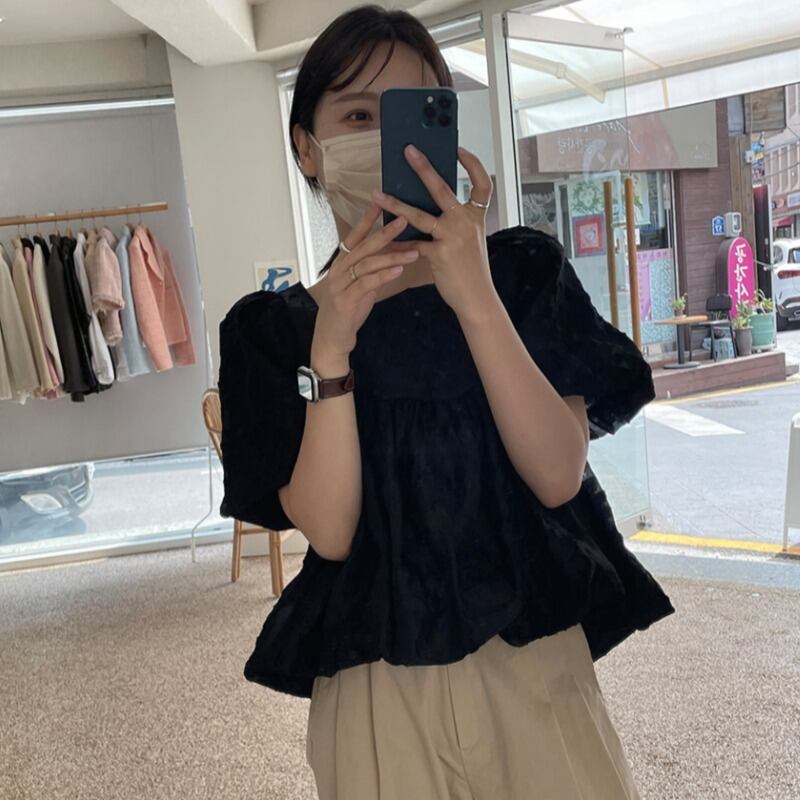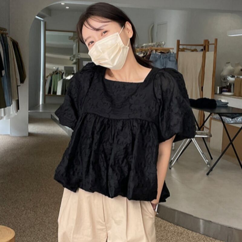 韓国ファッション夏服スタンダードFlowerデザイン ルーズシャツ レトロ 大人ガーリー スウィート キュート カジュアル 夏物 フラワーデザイン スクウェア muzly9972278850 | Neatly